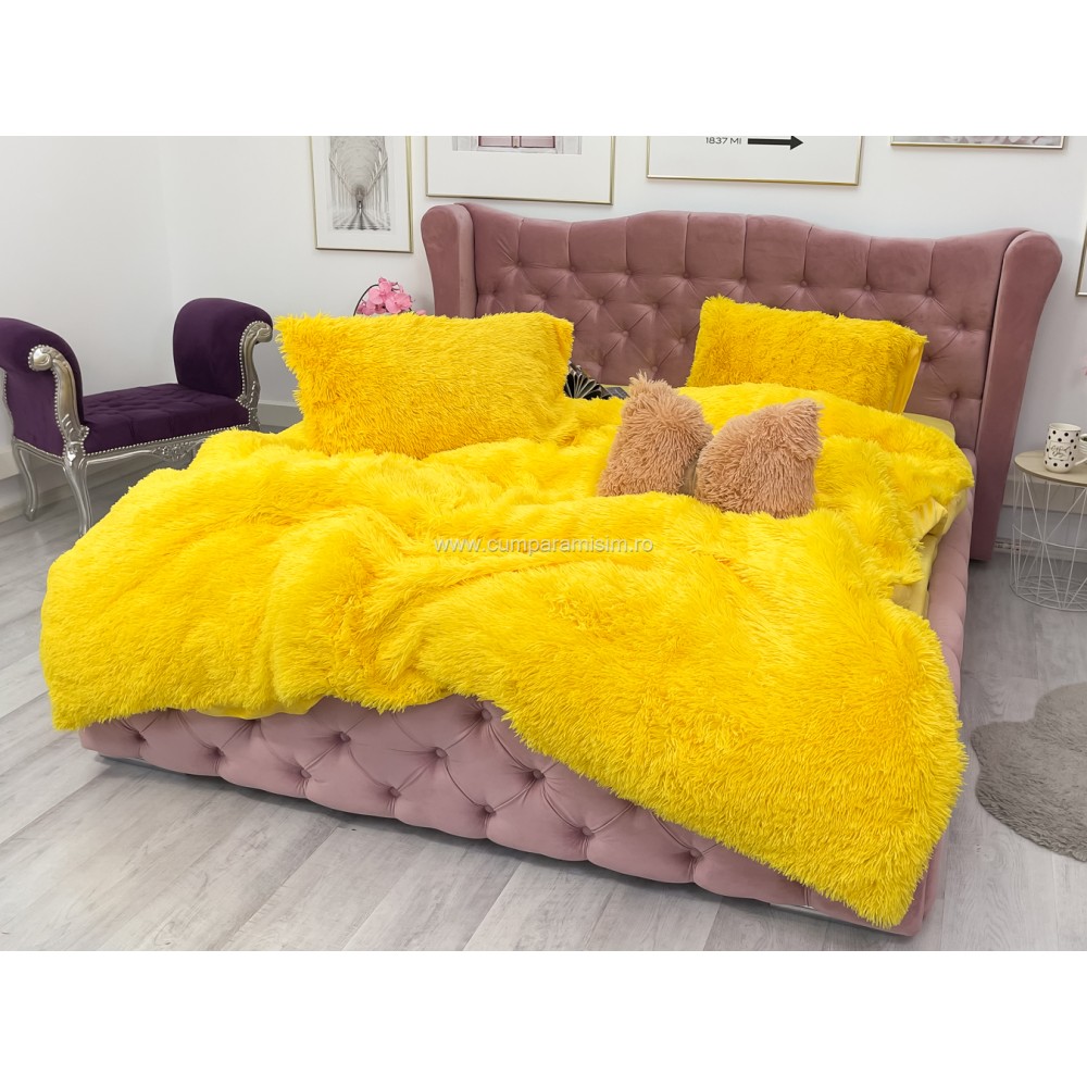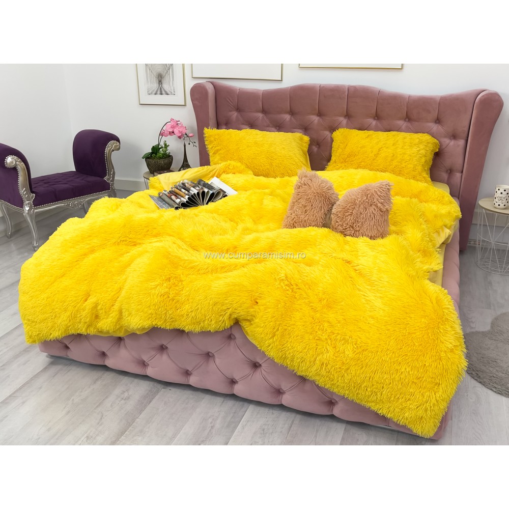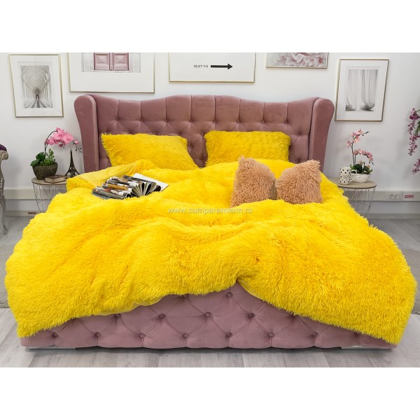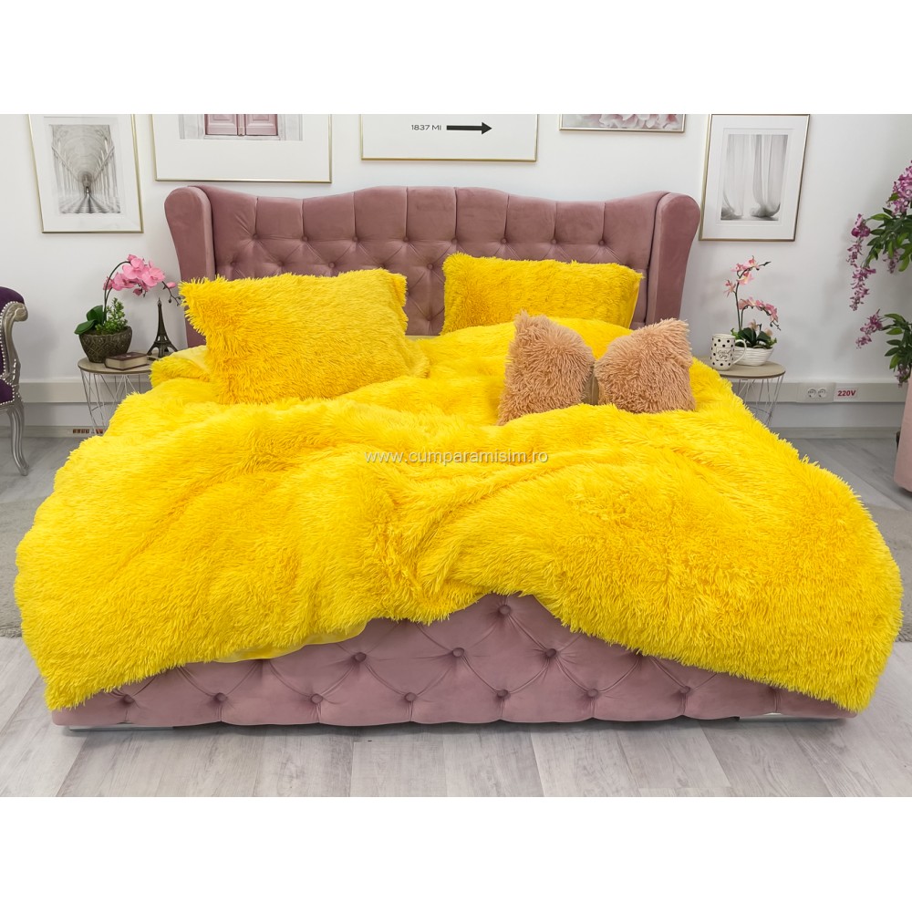 Lenjerie pat super pufoasa COCOLINO Fluffy 4 piese galbena, cod produs: CSA-FLF09