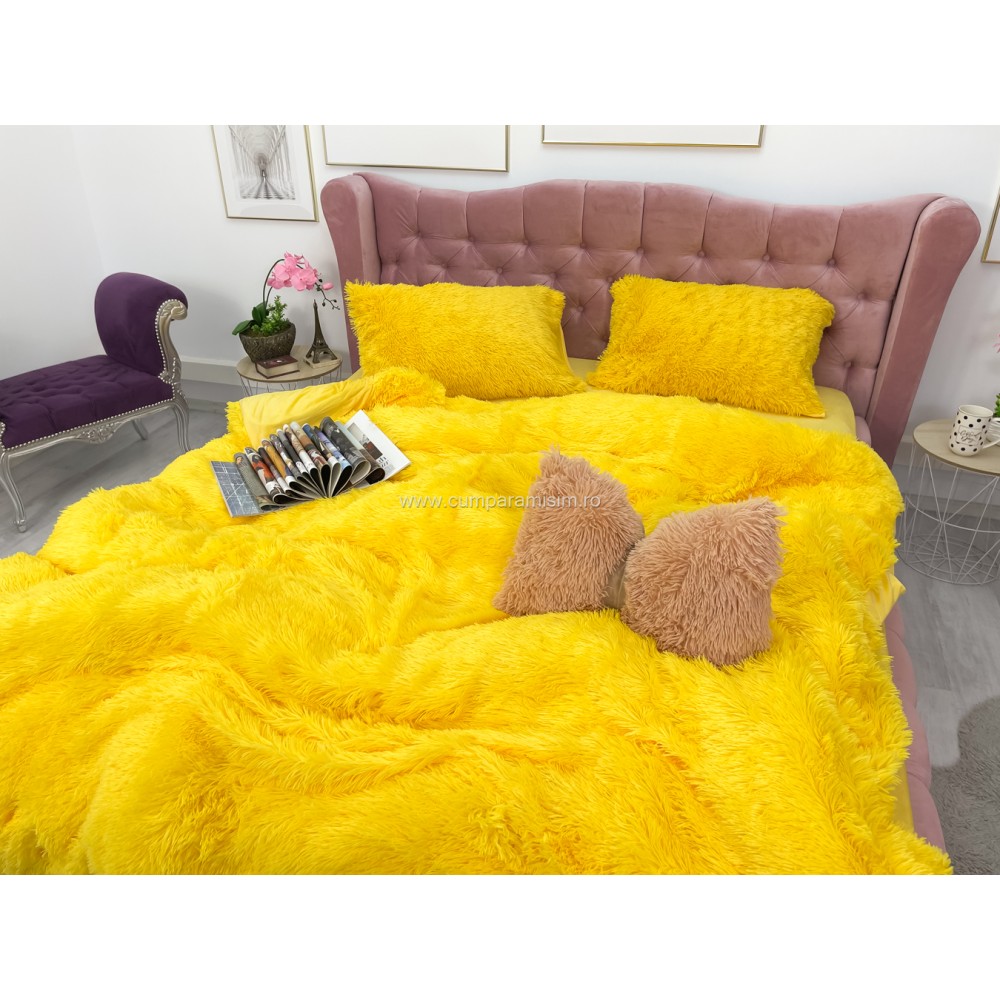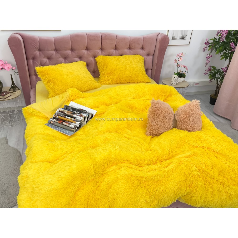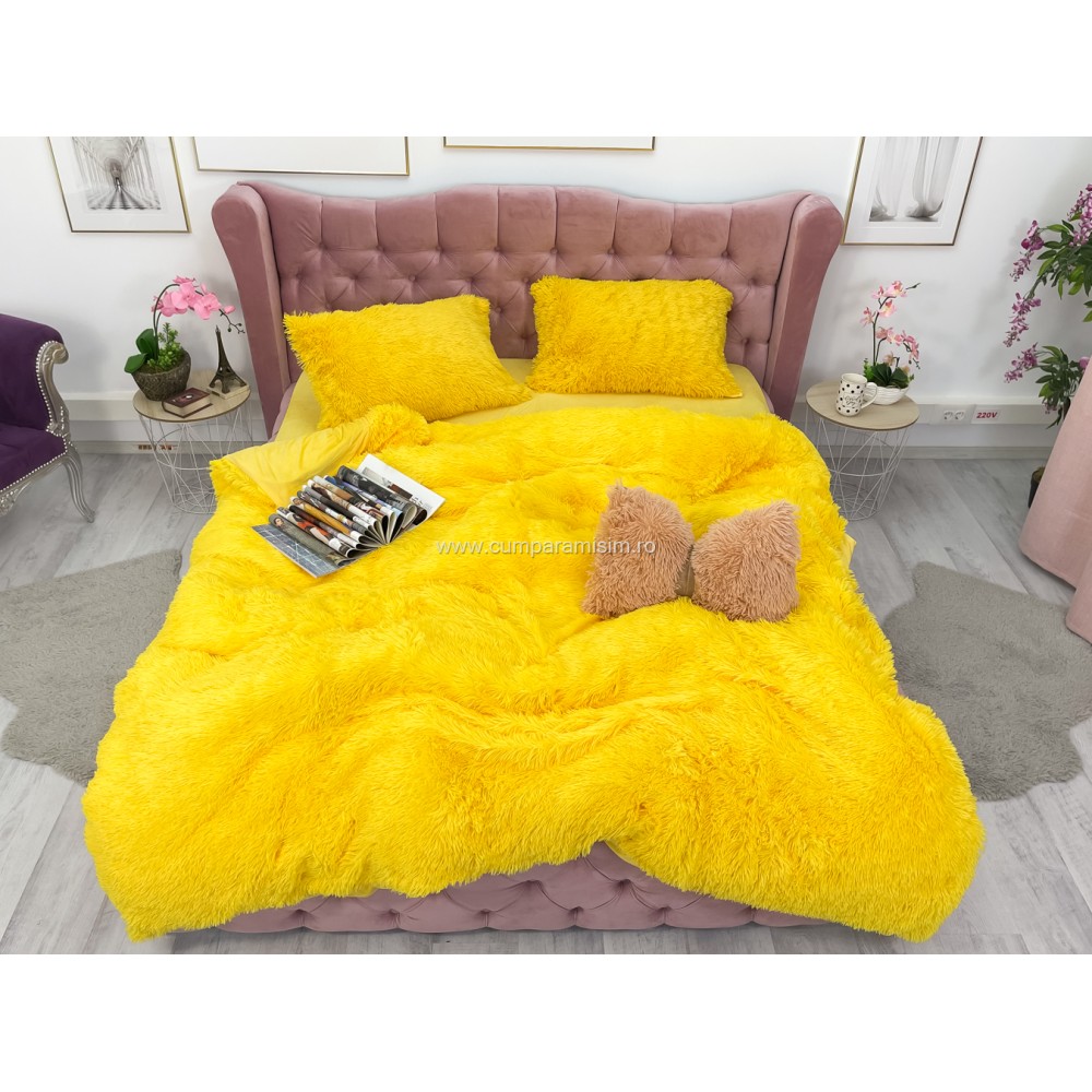 Lenjerie pat super pufoasa COCOLINO Fluffy 4 piese galbena, cod produs: CSA-FLF09