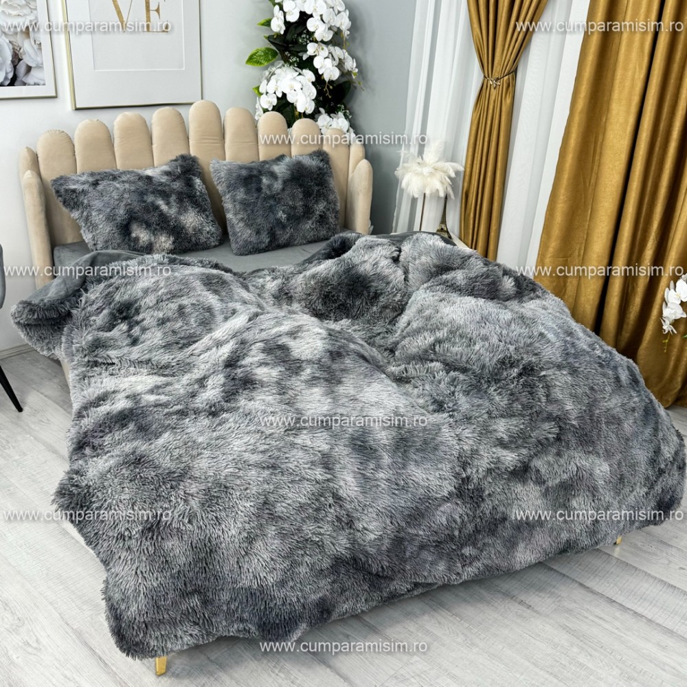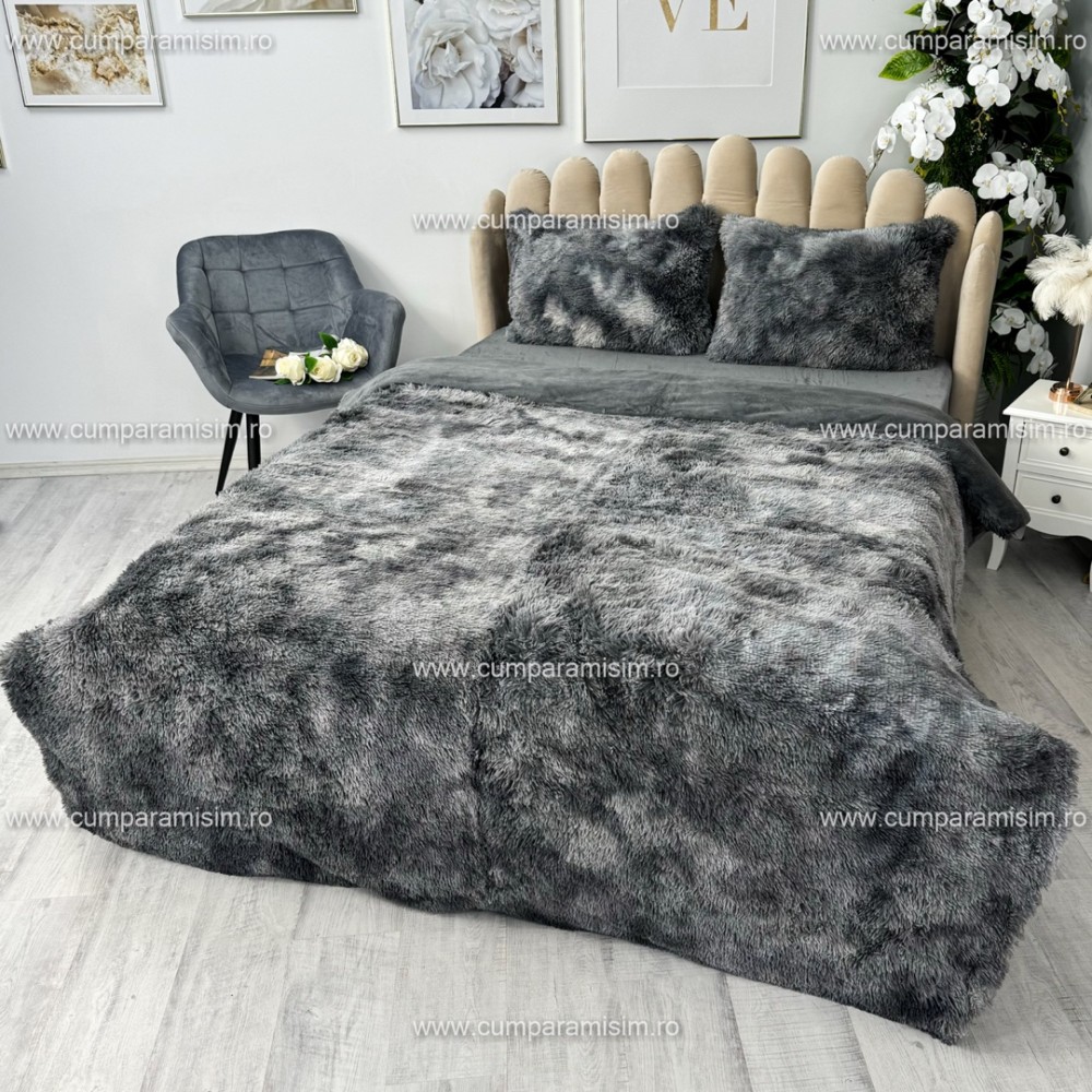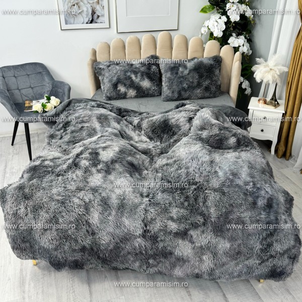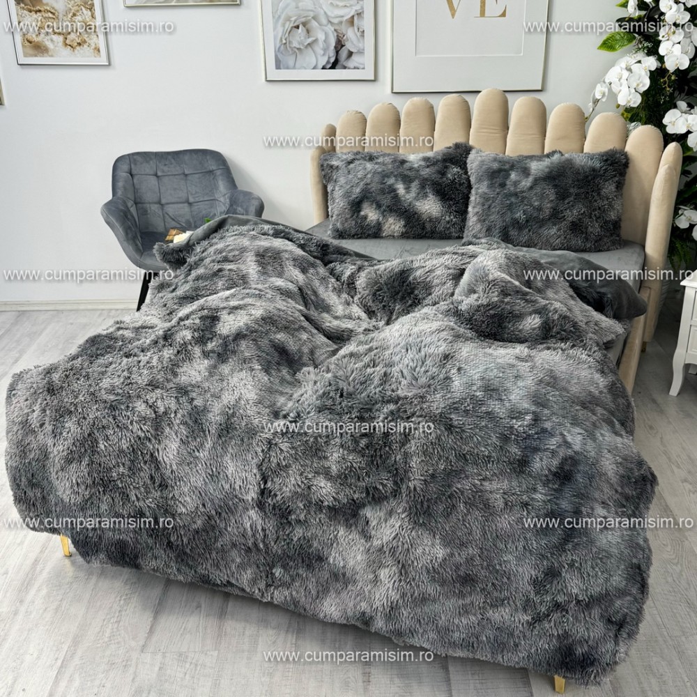 Lenjerie pat super pufoasa, COCOLINO Fluffy, 4 piese, Gri inchis degrade, cod produs: CSA-FLF20