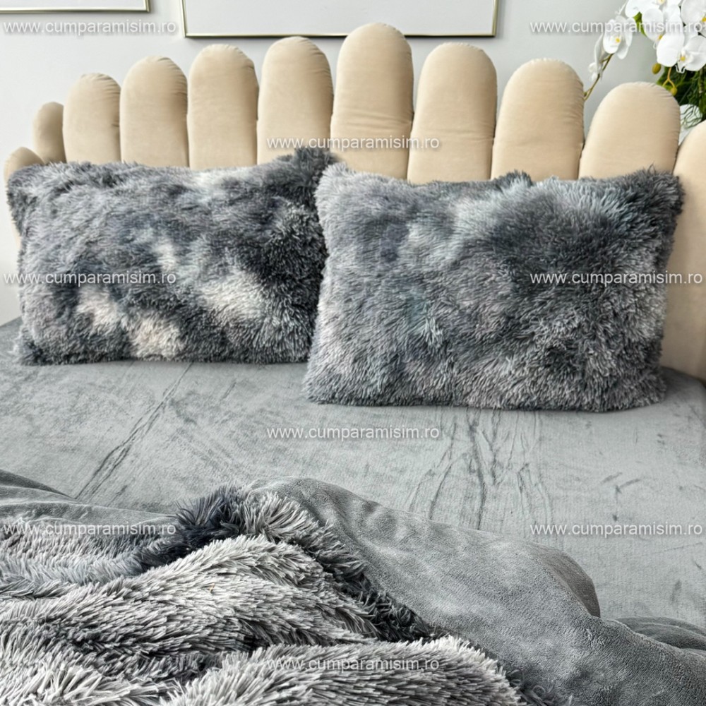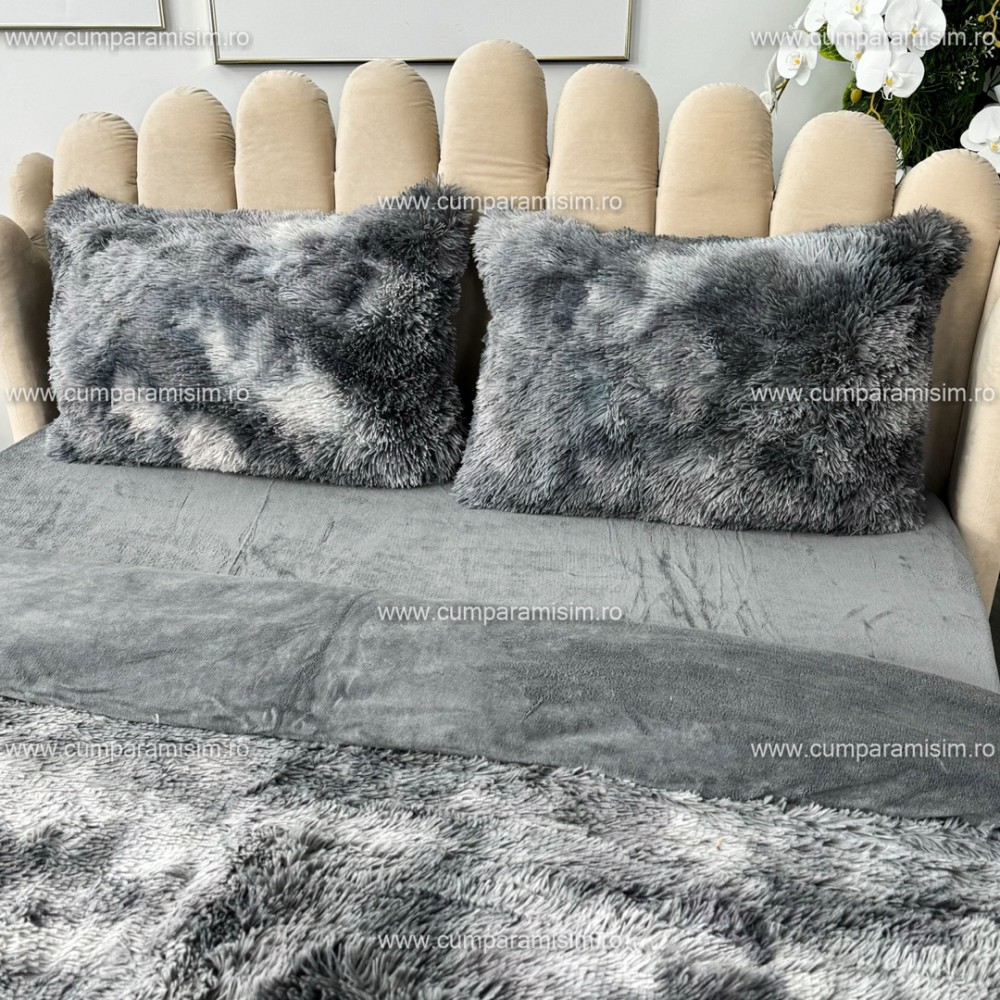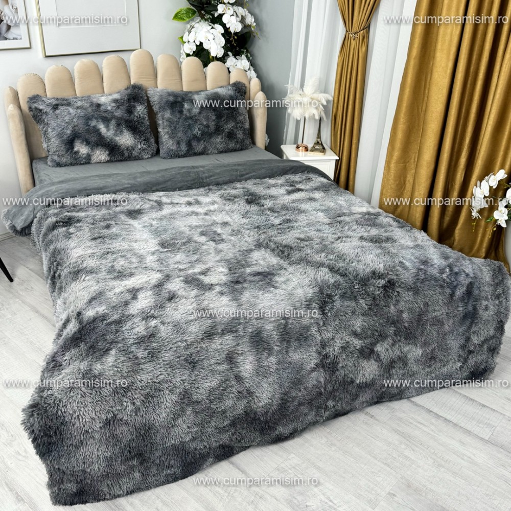 Lenjerie pat super pufoasa, COCOLINO Fluffy, 4 piese, Gri inchis degrade, cod produs: CSA-FLF20
