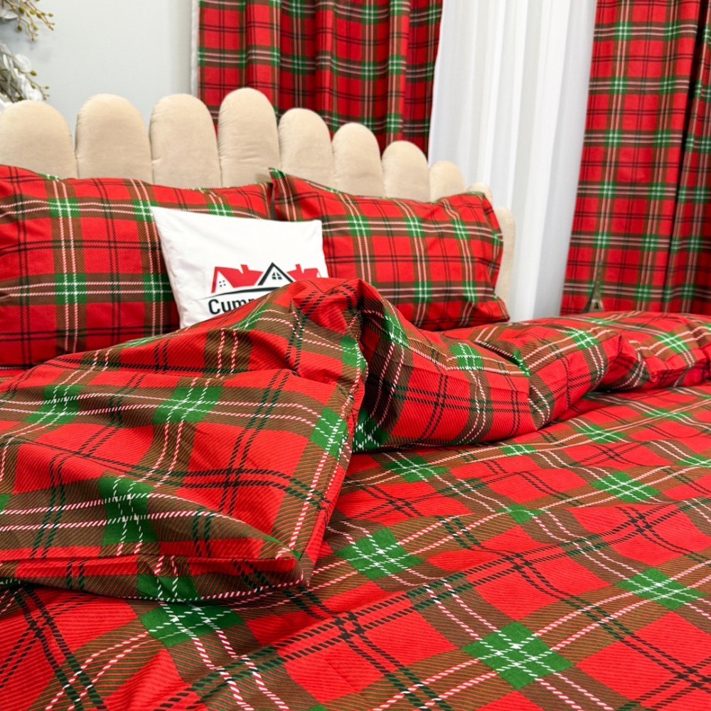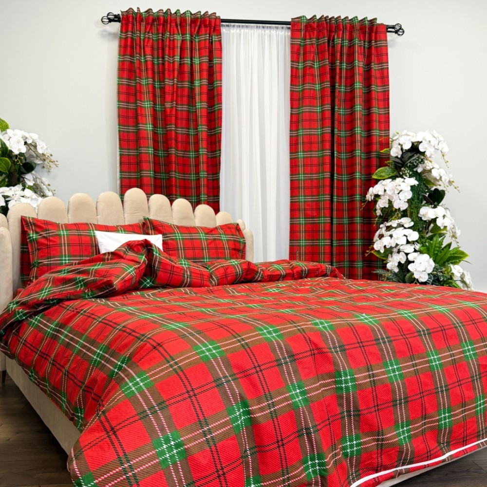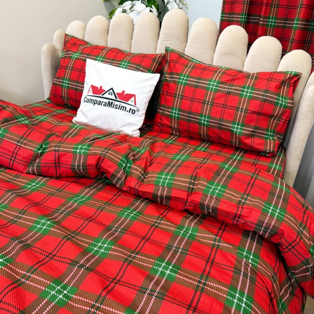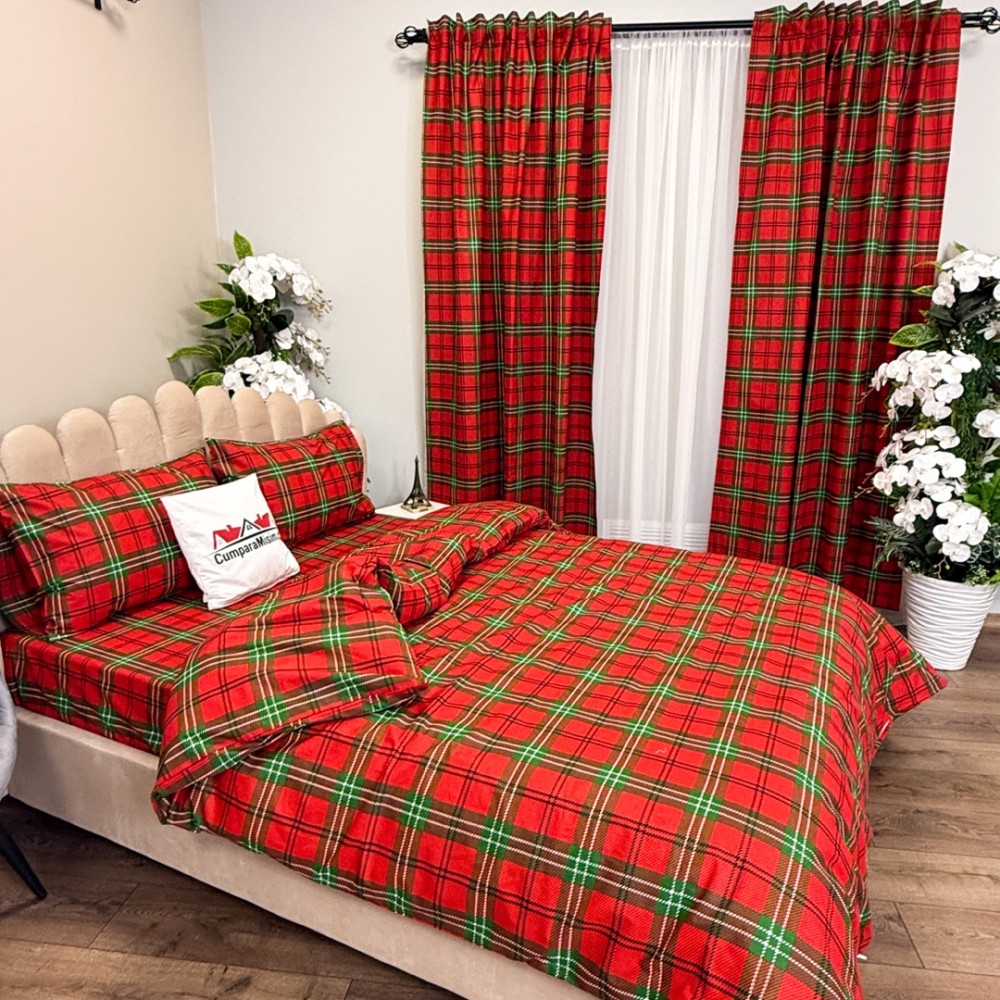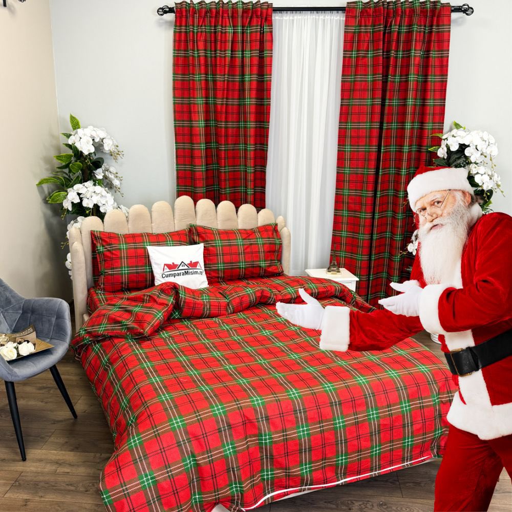 Adaugă un strop de magie de Crăciun în dormitorul tău cu setul nostru exclusiv creat în atelierul nostru de croitorie, disponibil pe CumparaMisim.ro! Fiecare piesă este realizată cu grijă și atenție la detalii, pentru a aduce un decor festiv și o atmosferă caldă, primitoare. Setul cuprinde o lenjerie de pat din 4 piese și două draperii, toate confecționate din bumbac ranforsat de cea mai bună calitate.