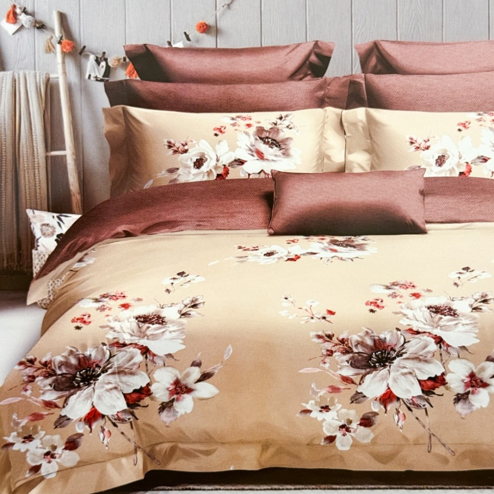 Lenjerie pat dublu, FINET, 6 piese, Bej, flori, Johny Home Pucioasa, cod produs: DKF194