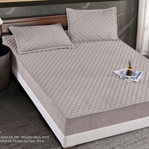 Husă Matlasată Tip Topper din Catifea 160x200cm, cu 2 Fețe de Pernă 50x70cm - Somn Odihnitor și Susținere pentru Spate, Grej, Johny Home Pucioasa, cod produs: SPR-160HM09