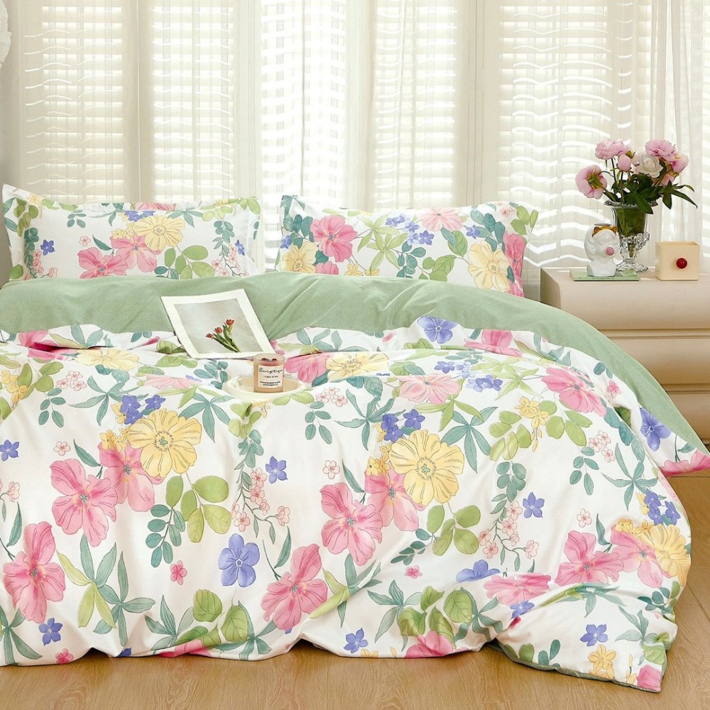 Lenjerie pentru pat de o persoana cu 4 piese, confectionata din bumbac 100% finet.