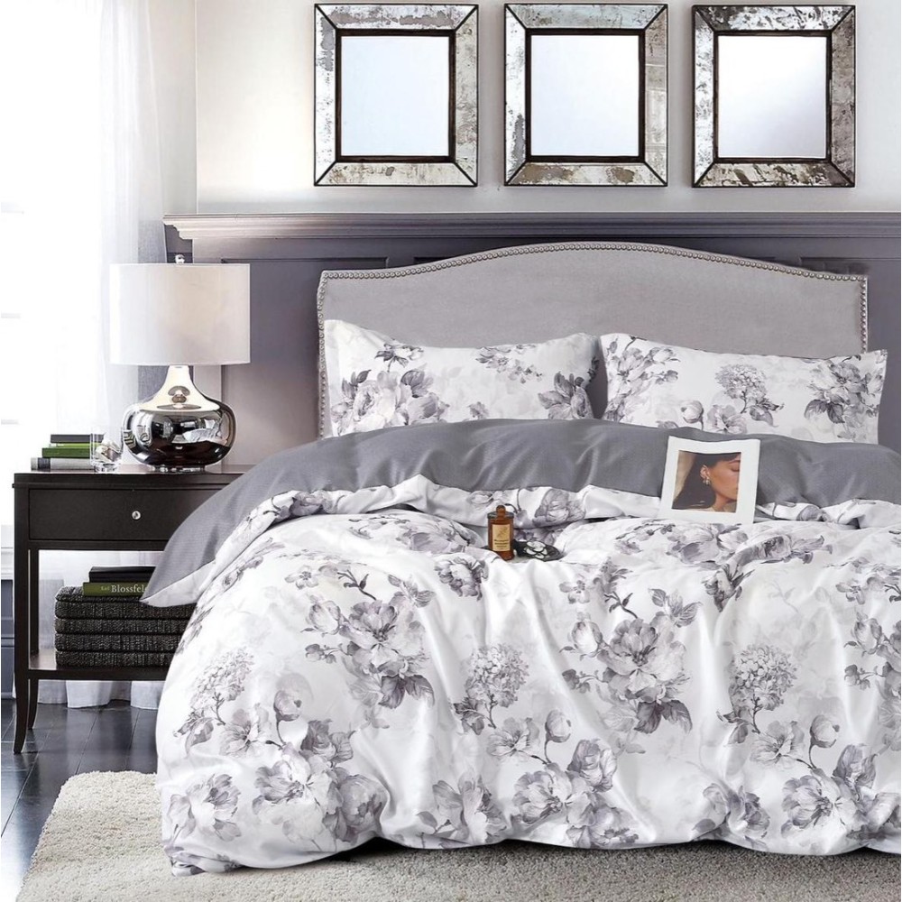 Lenjerie pat 1 PERSOANA, FINET, 4 piese, Gri, flori, Johny Home Pucioasa, cod produs: SPR-Y60-75