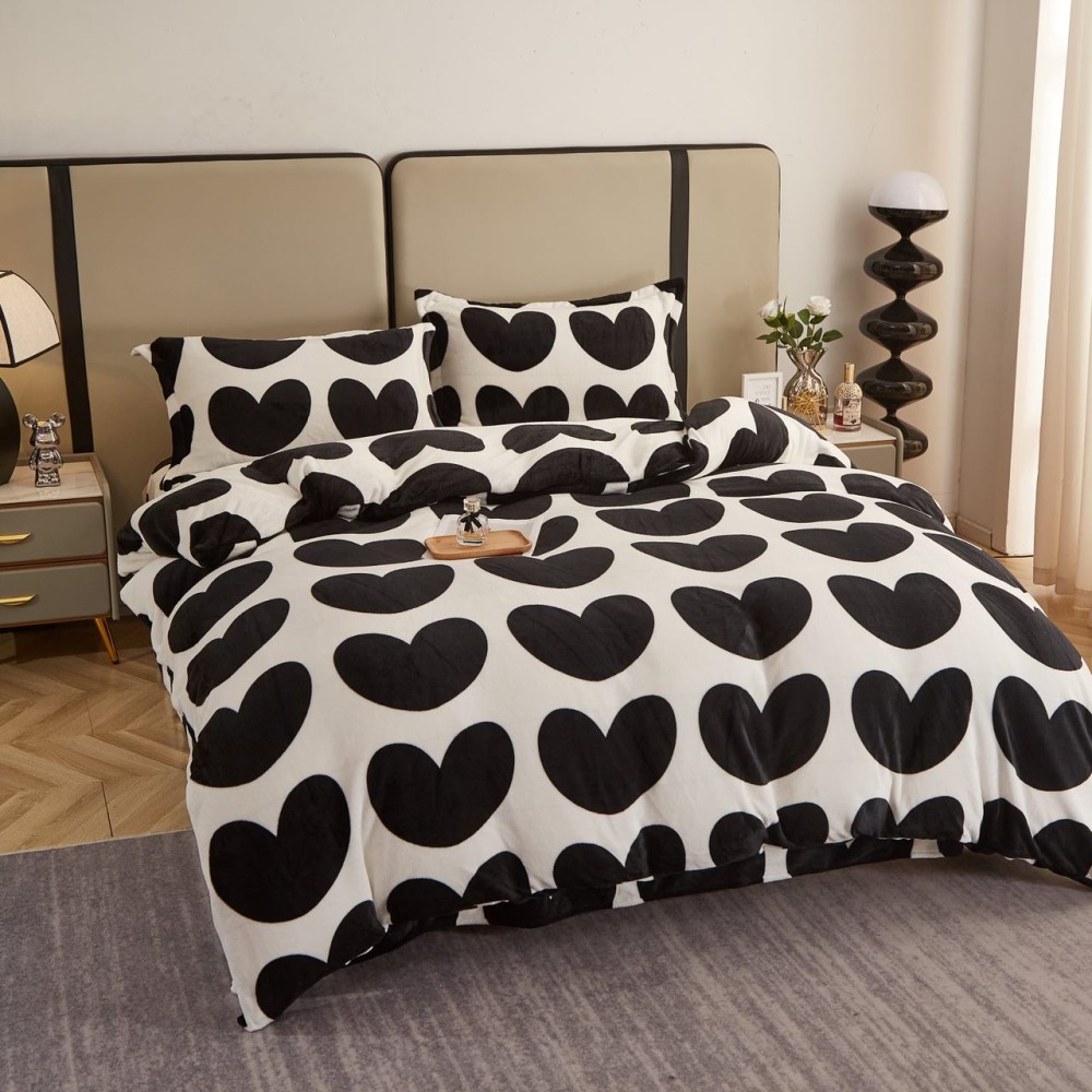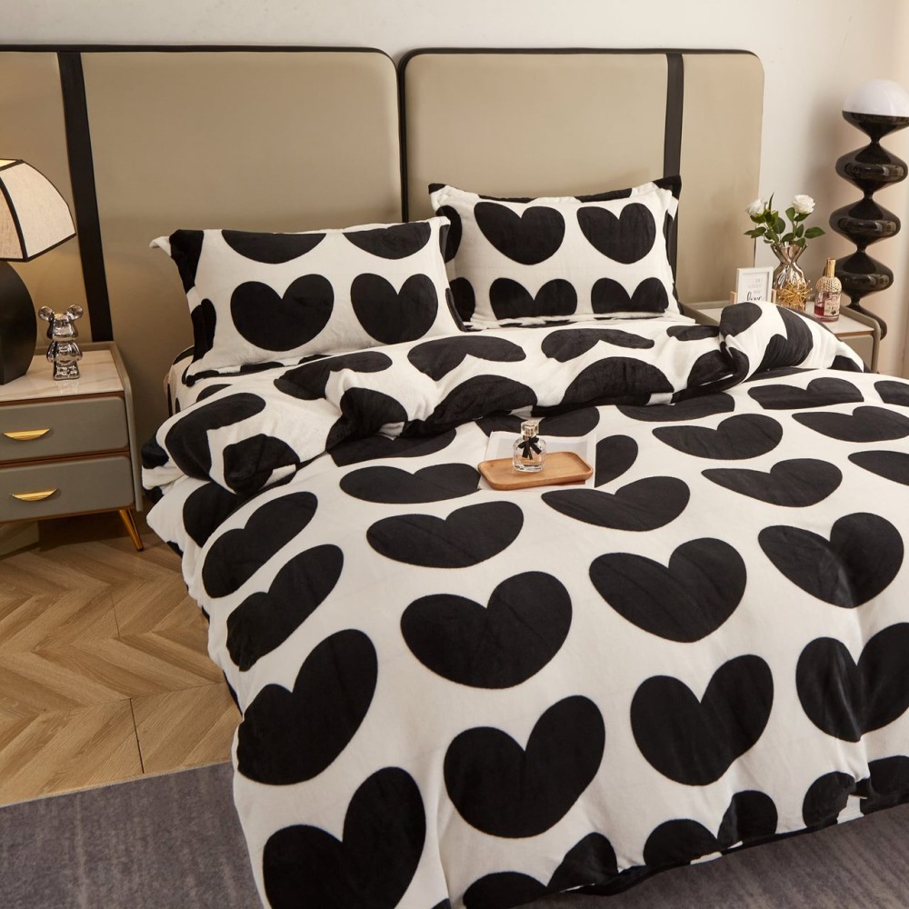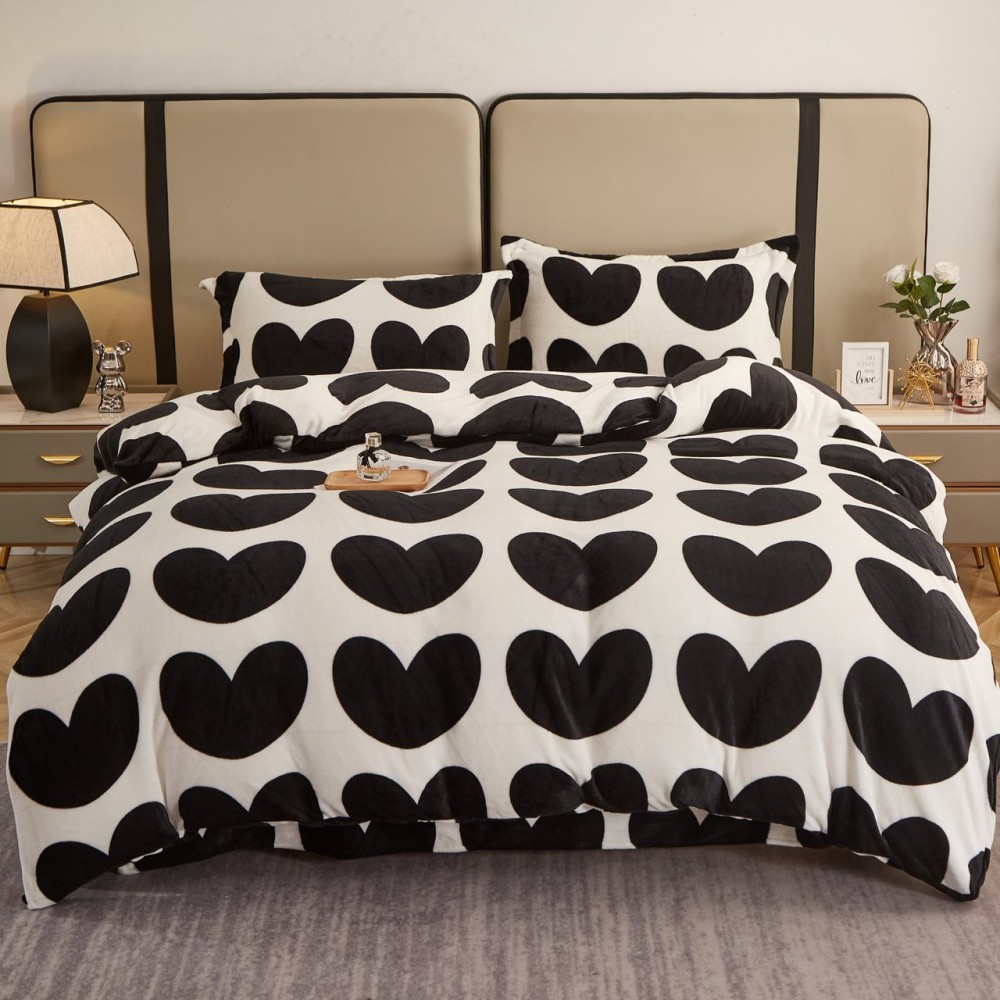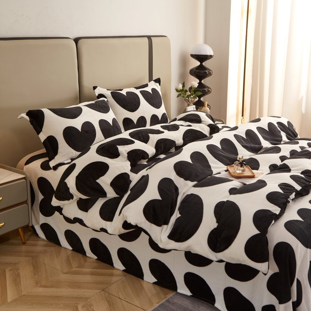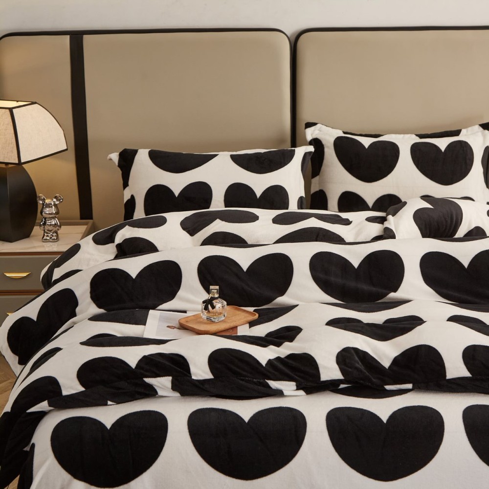Lenjerie pat dublu, Super Pufoasa COCOLINO, 4 piese, Alb-Negru, inimioare, cod produs: BCC-LC105