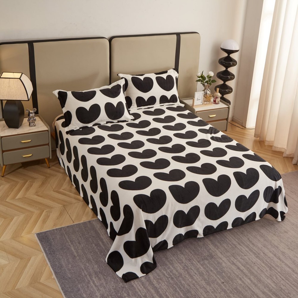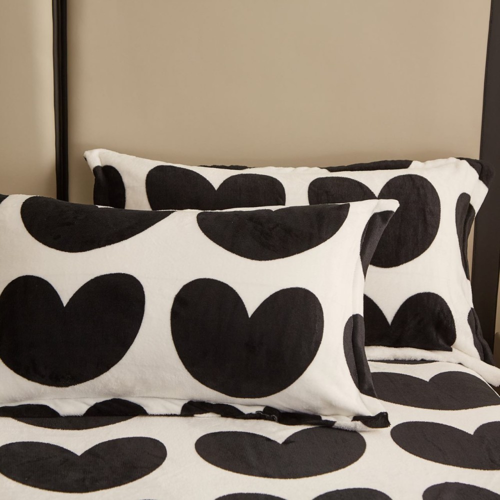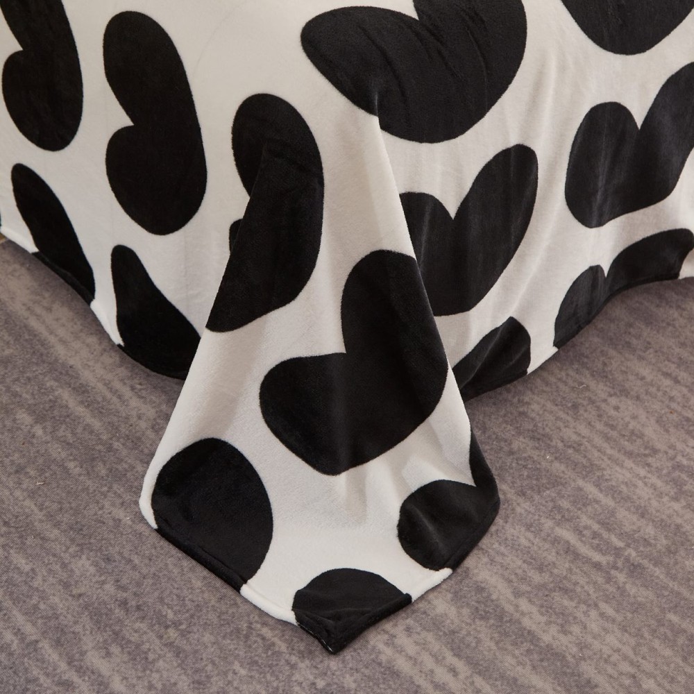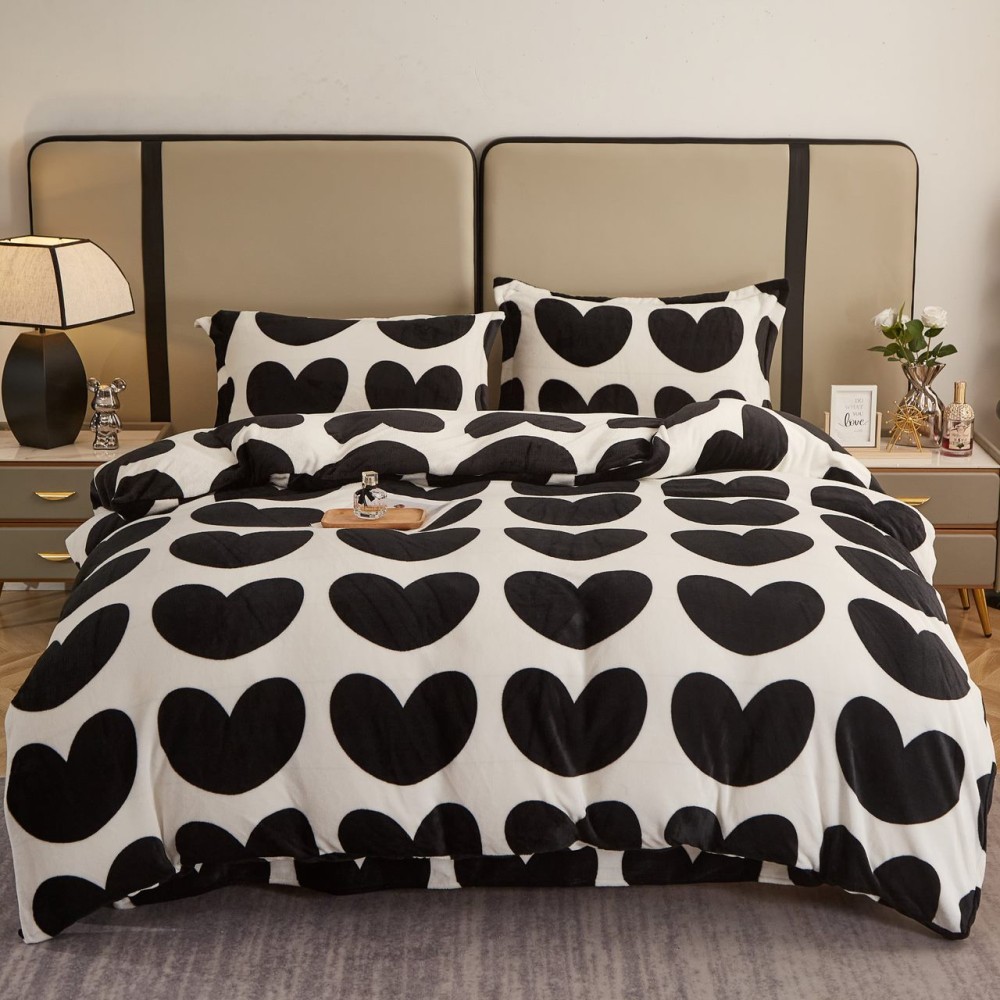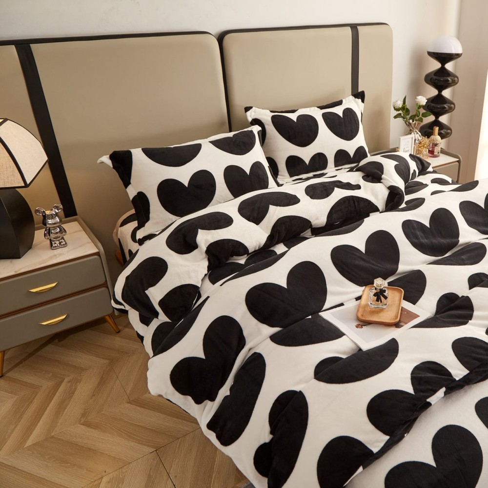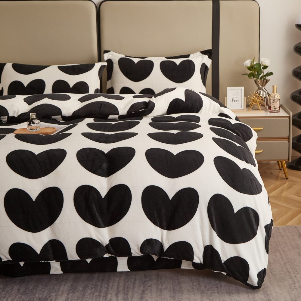 Lenjerie pat dublu, Super Pufoasa COCOLINO, 4 piese, Alb-Negru, inimioare, cod produs: BCC-LC105