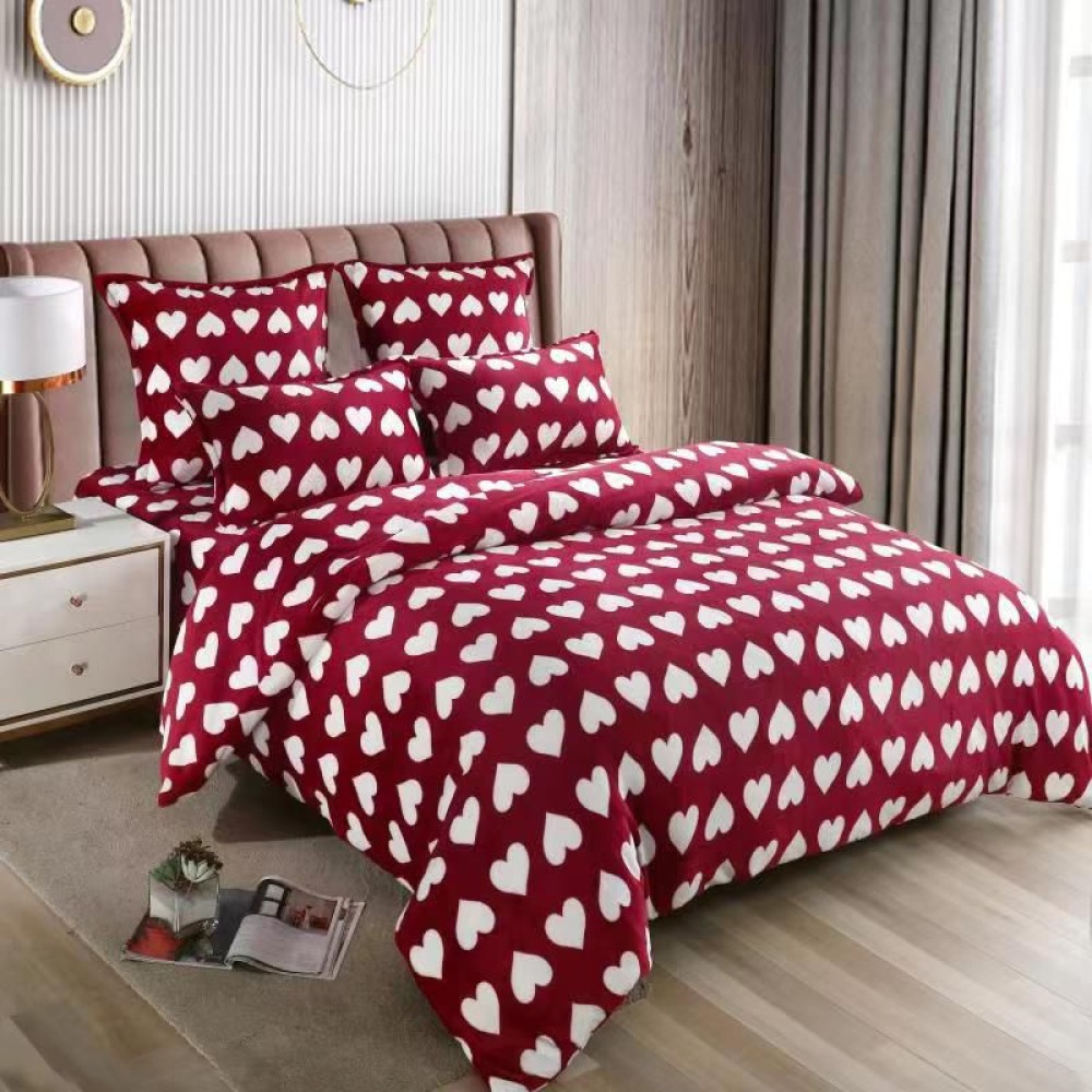 Lenjerie pat dublu, Super Pufoasa COCOLINO, 4 piese, Rosu, inimioare, cod produs: BCC-LC12