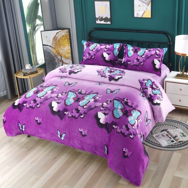 Lenjerie pat dublu, Super Pufoasa COCOLINO, 4 piese, Mov, fluturi, cod produs: BCC-LC15