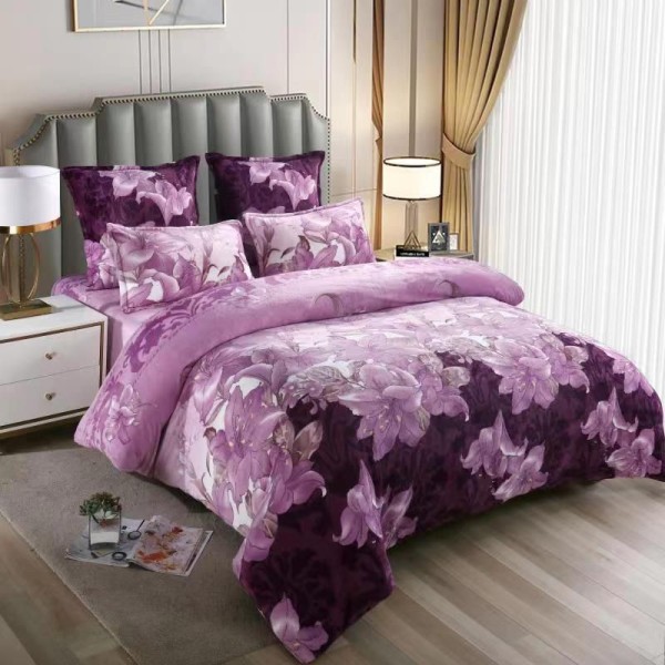 Lenjerie pat dublu, Super Pufoasa COCOLINO, 4 piese, Mov, flori, cod produs: BCC-LC16