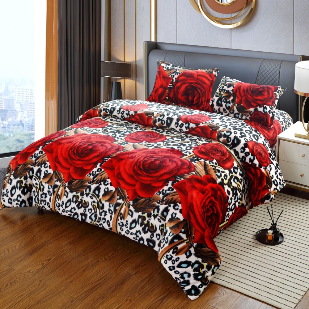 Lenjerie pat dublu, Super Pufoasa COCOLINO, 4 piese, Alb-Negru, trandafiri , cod produs: BCC-LC4