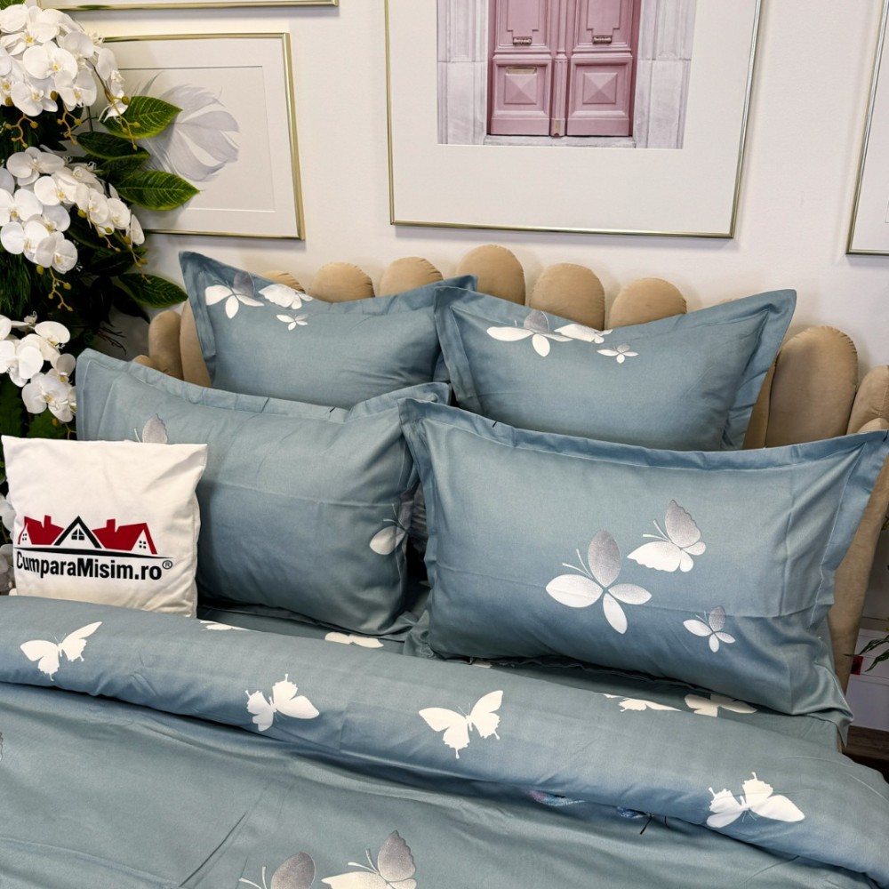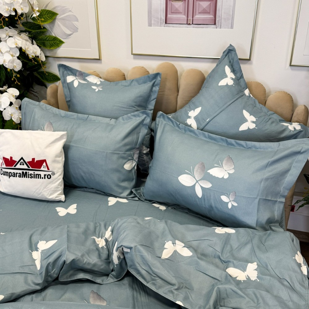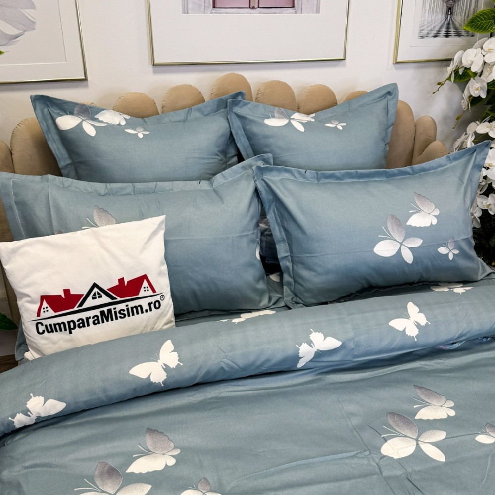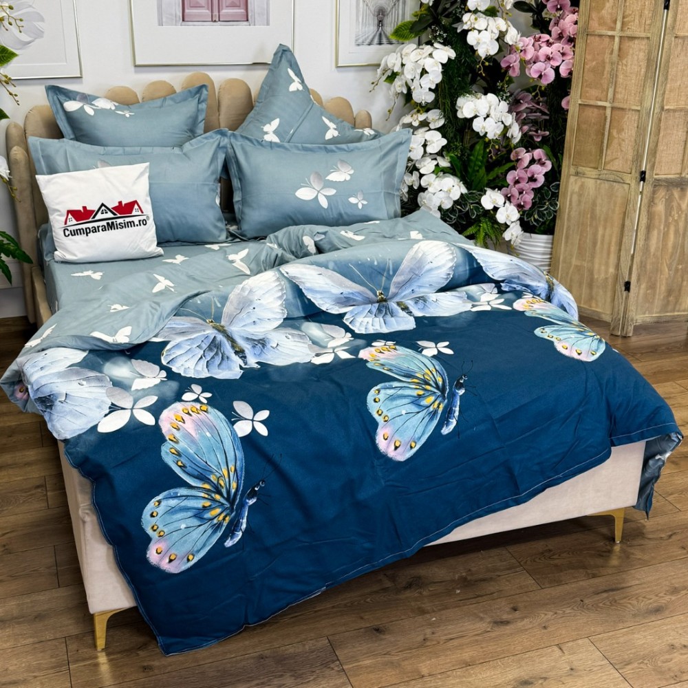 Lenjerie pat dublu, FINET, cu elastic, 6 piese, Albastru. fluturi, Primavara Casa, cod produs: PRM-FE-B979