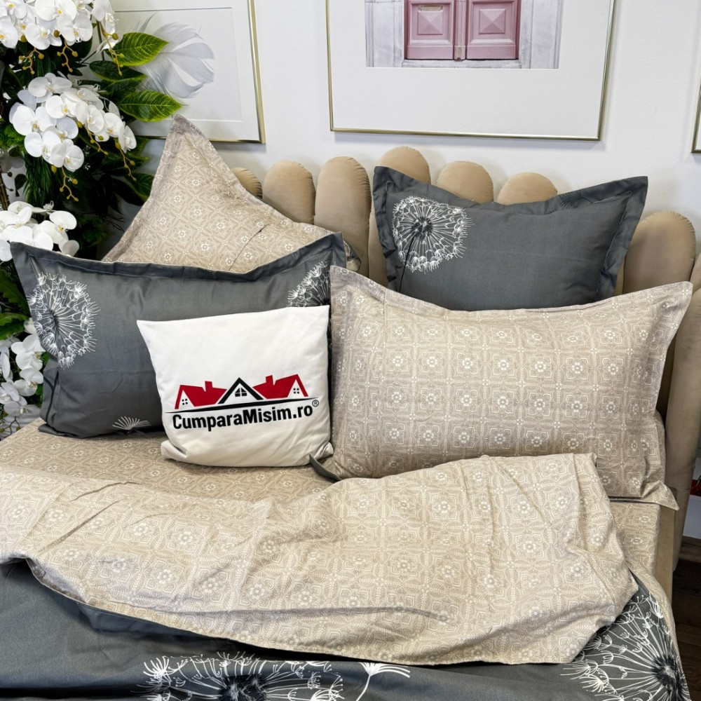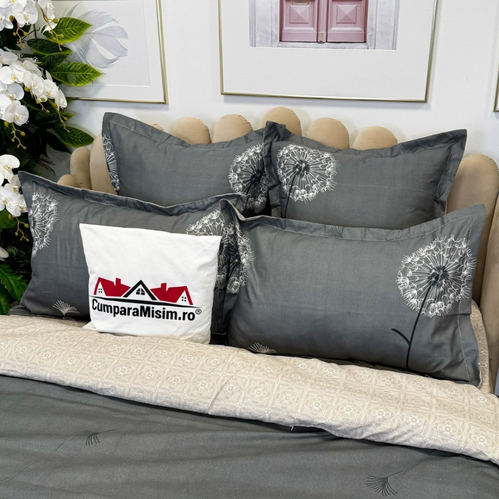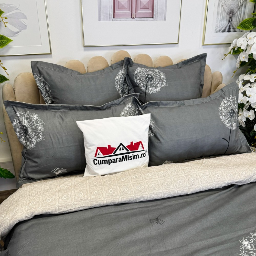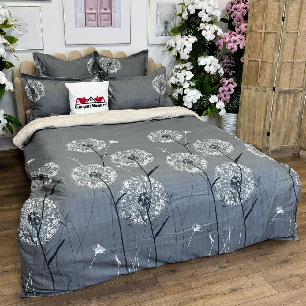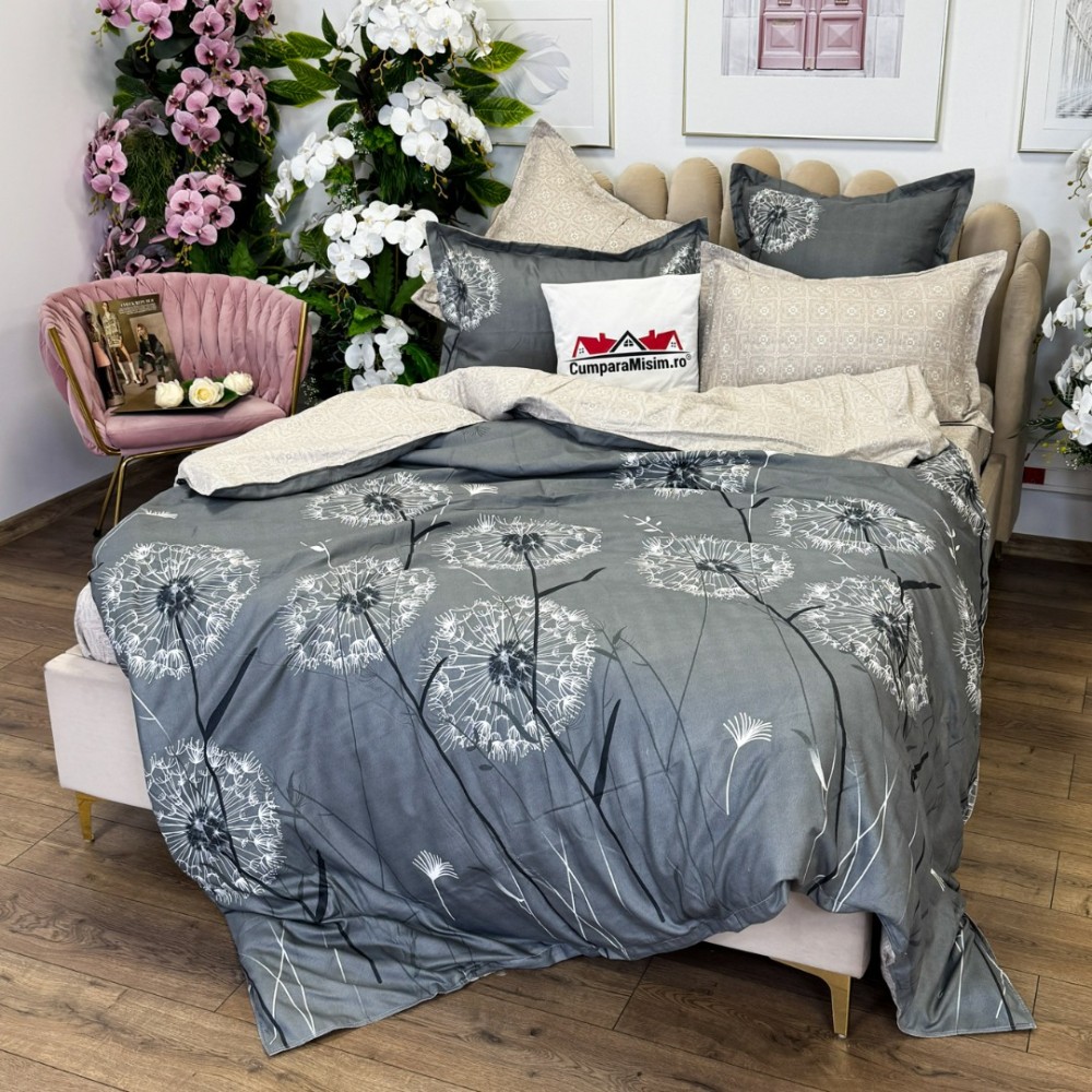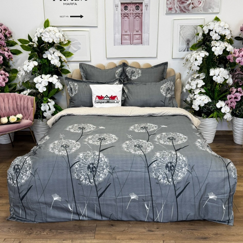 Lenjerie pat dublu, FINET, cu elastic, 6 piese, Gri, Papadii, Primavara Casa, cod produs: PRM-FE-B925