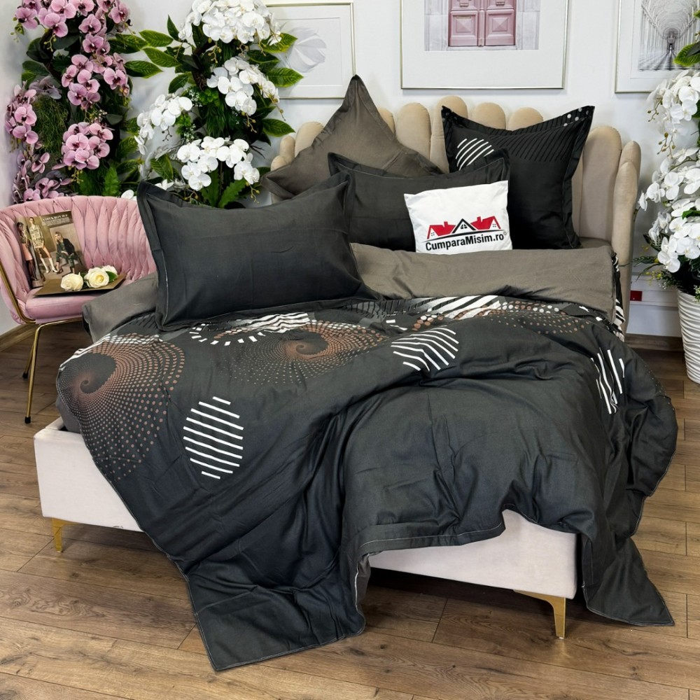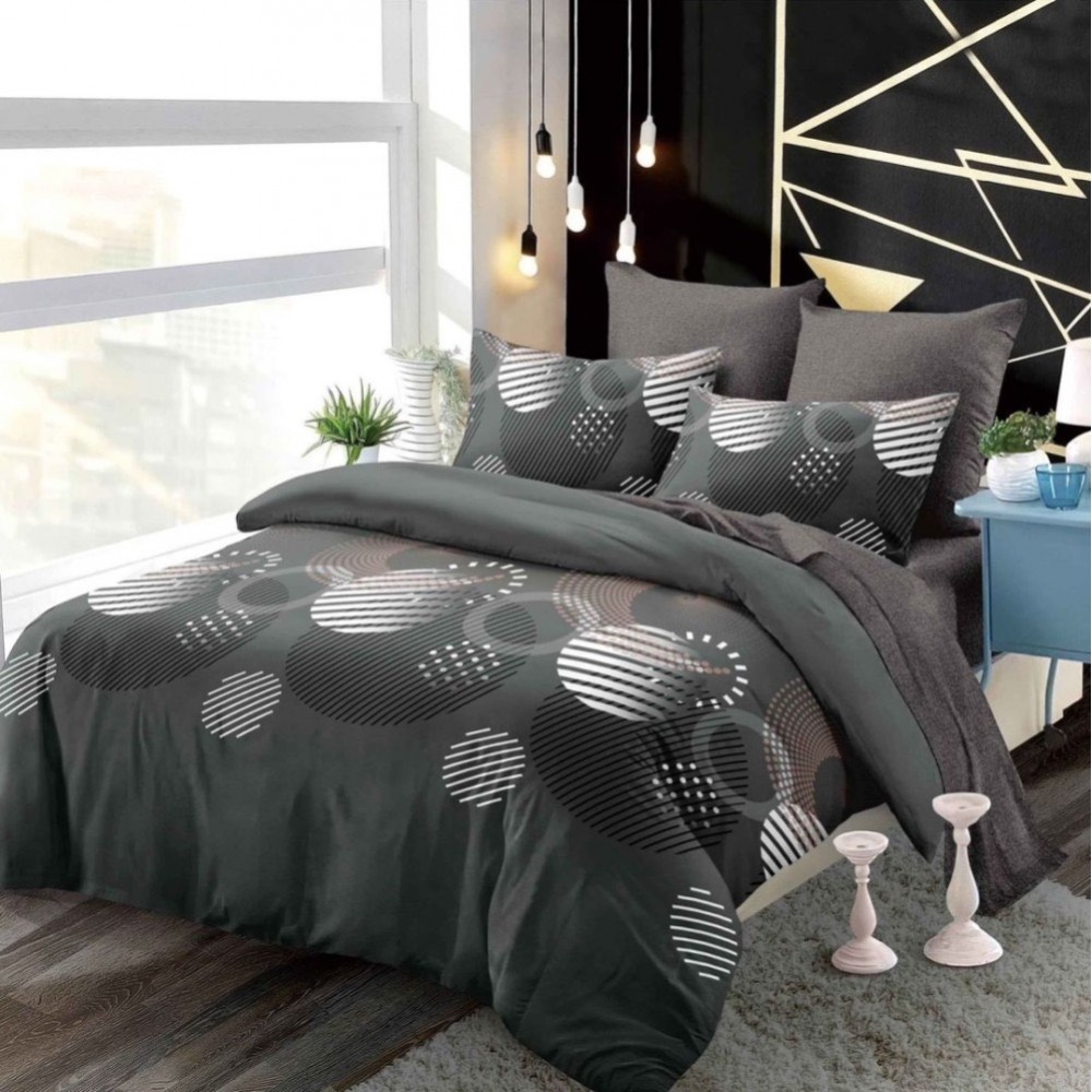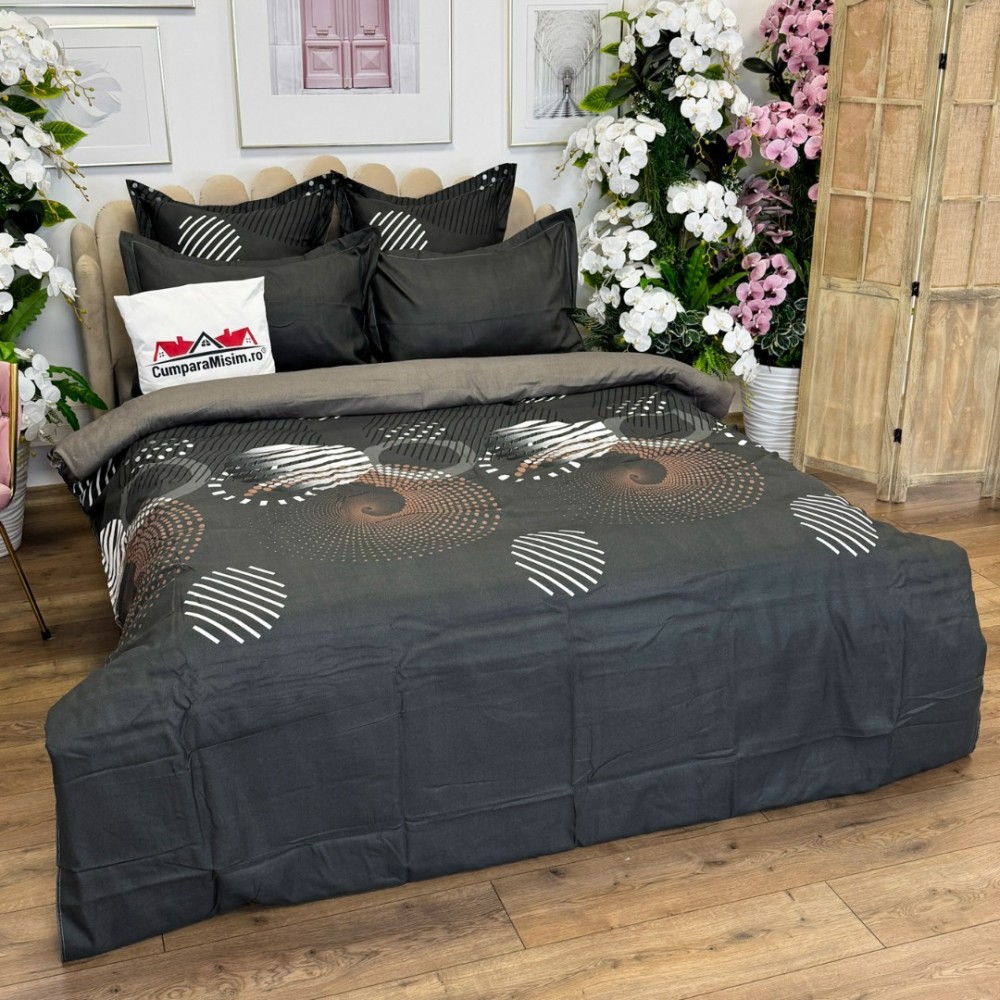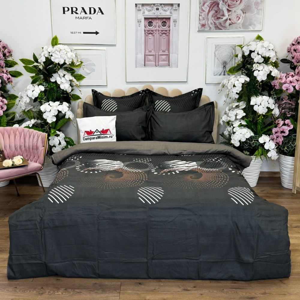 Lenjerie pat dublu, FINET, cu elastic, 6 piese, Gri, Cercuri, Primavara Casa, cod produs: PRM-FE-B6008
