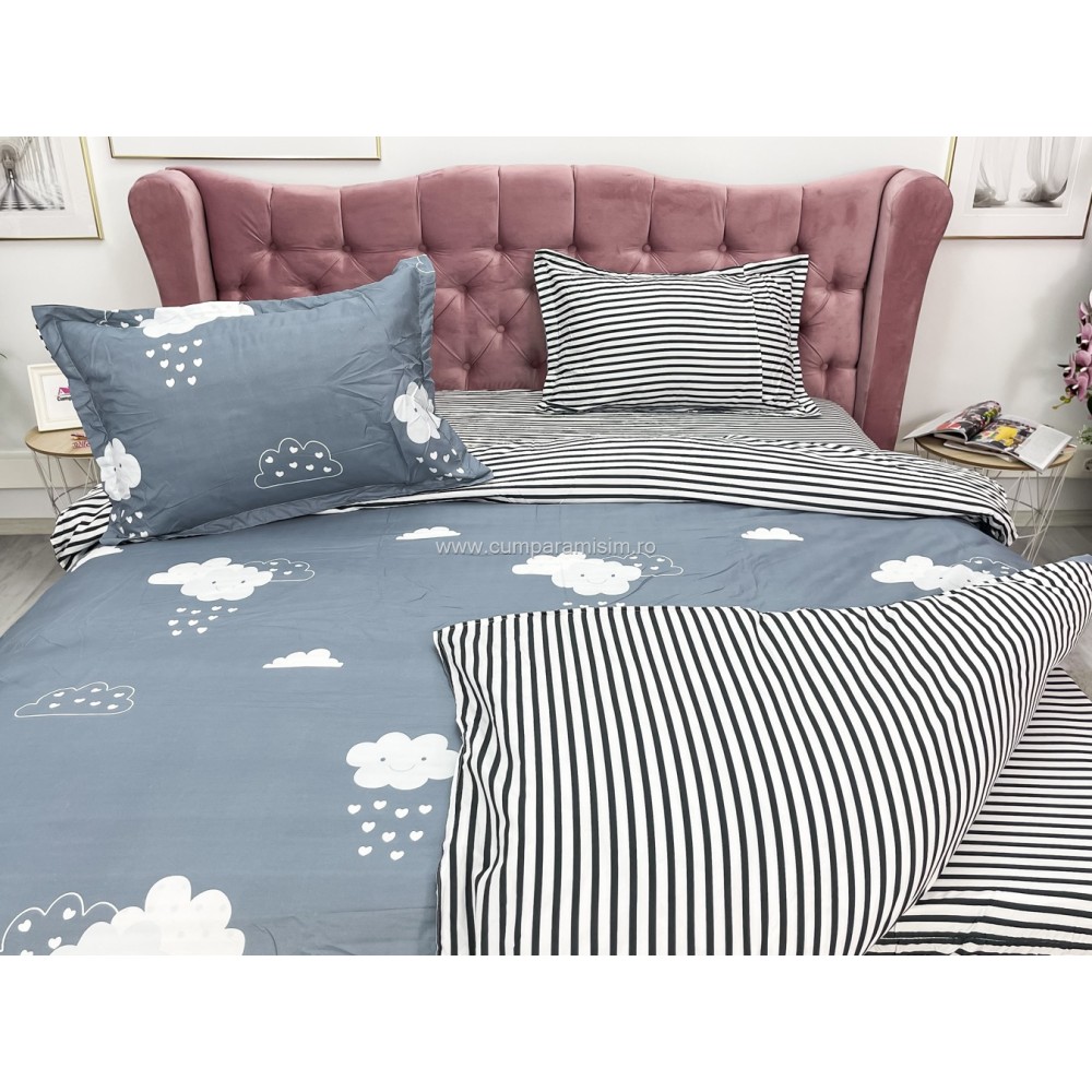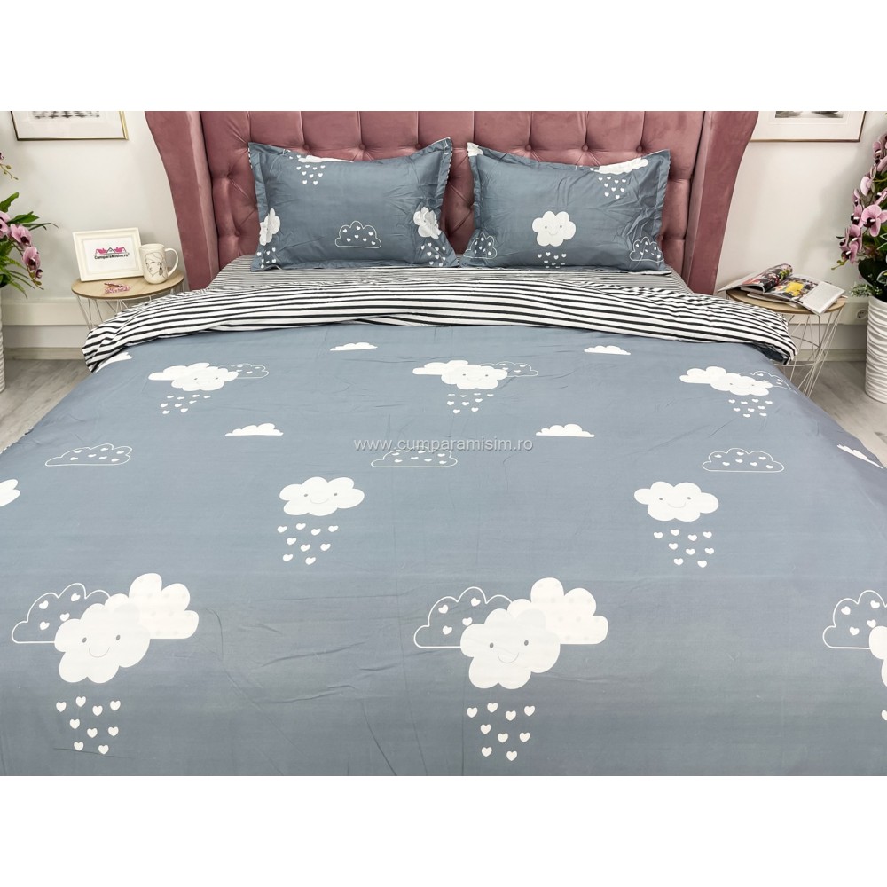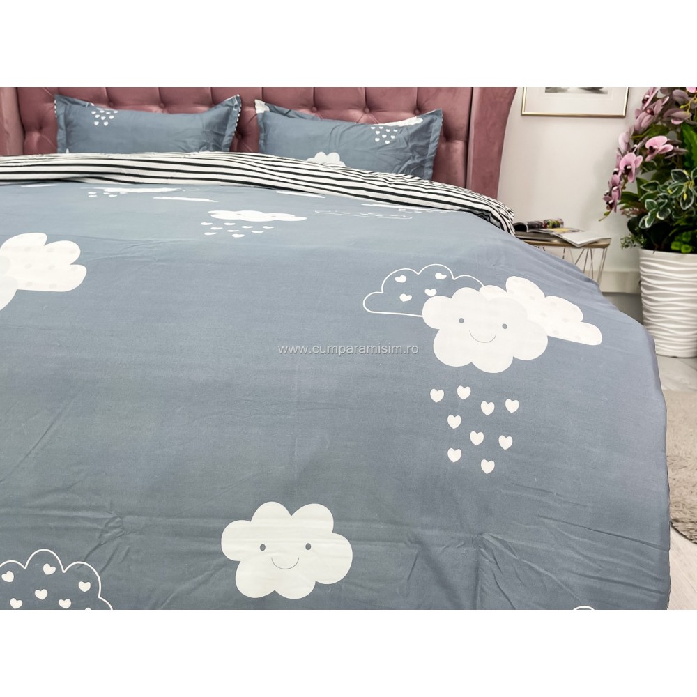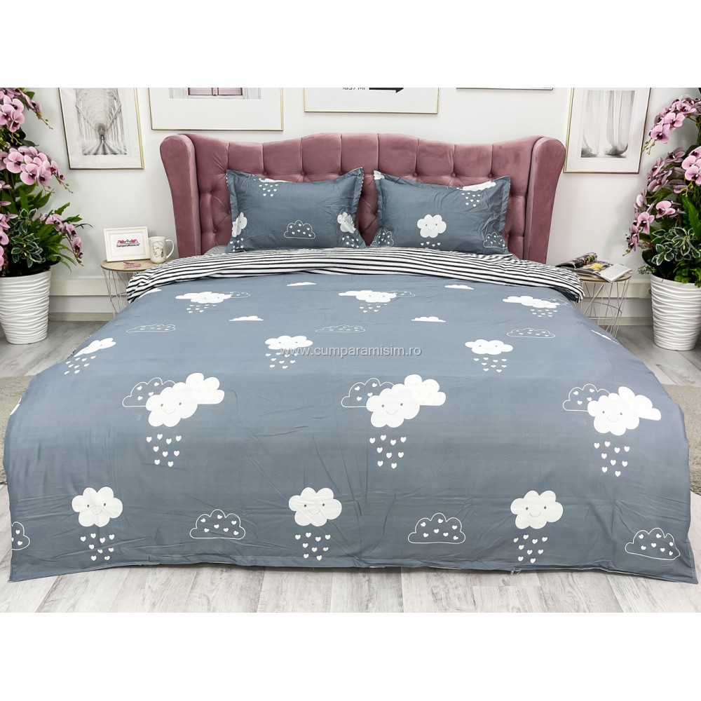 Lenjerie pat dublu cu doua feţe, bumbac satinat, 4 piese, Gri, norisori, Johny Home Pucioasa, cod produs: SPR-A50-393