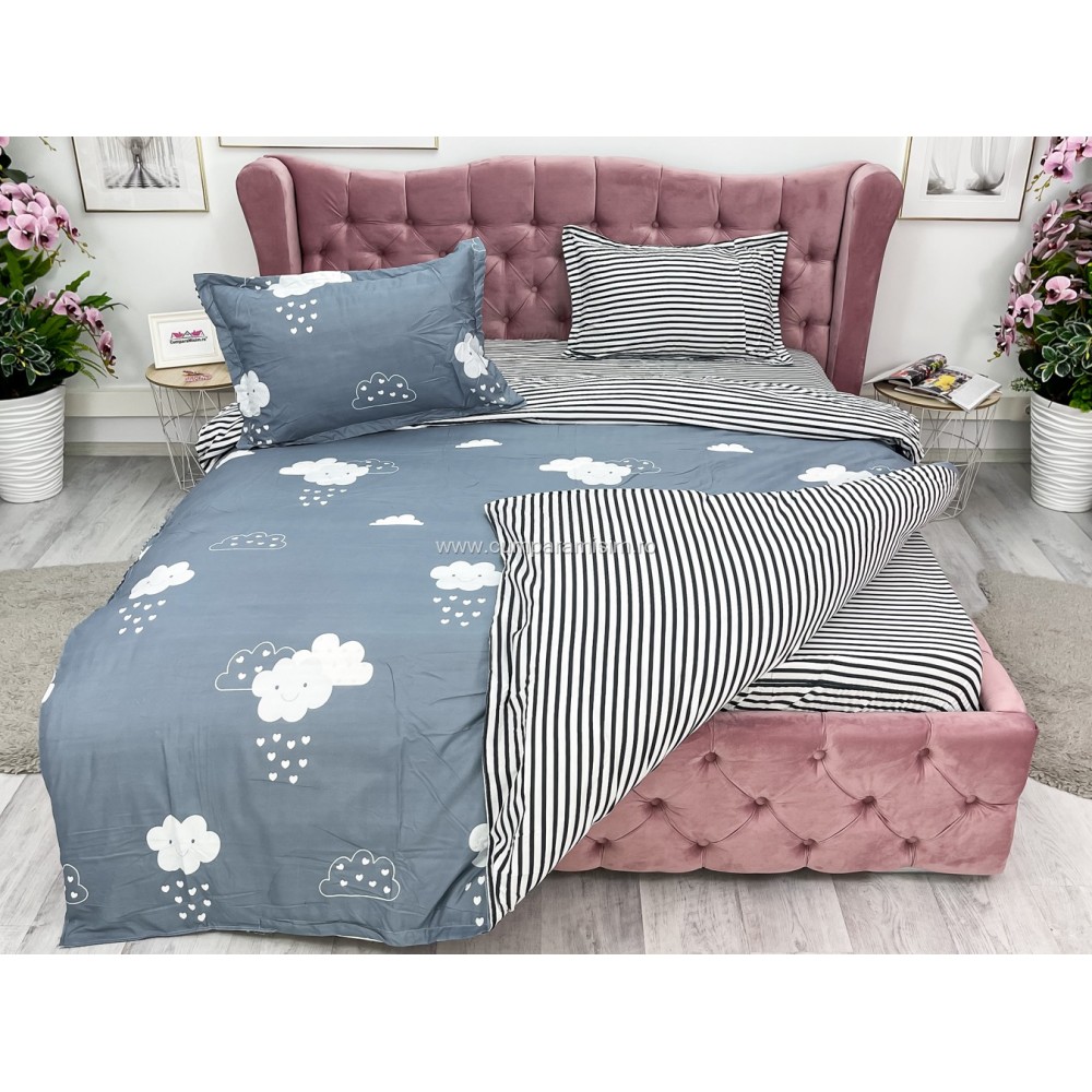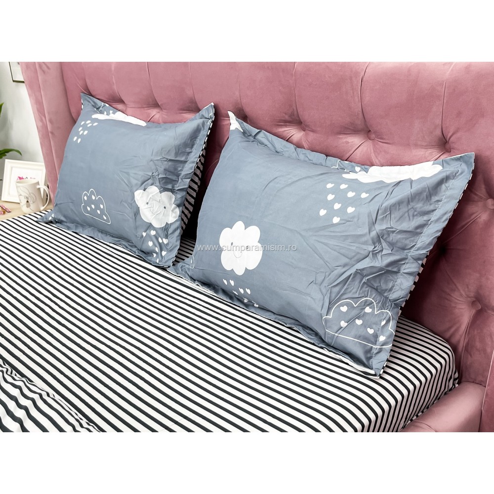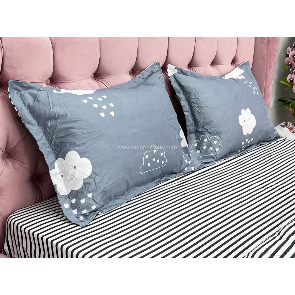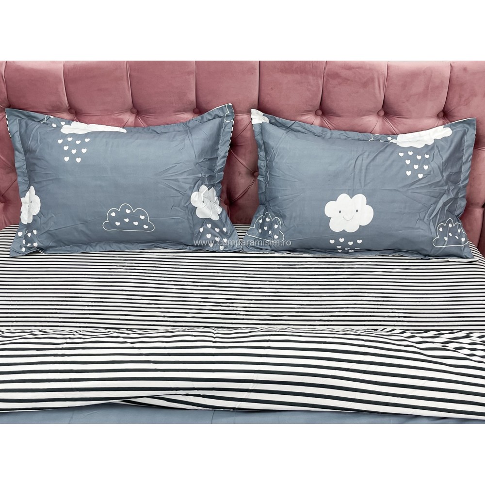 Lenjerie pat dublu cu doua feţe, bumbac satinat, 4 piese, Gri, norisori, Johny Home Pucioasa, cod produs: SPR-A50-393