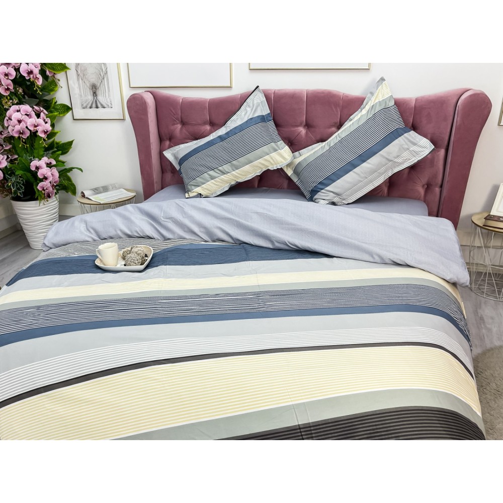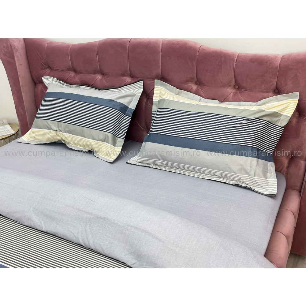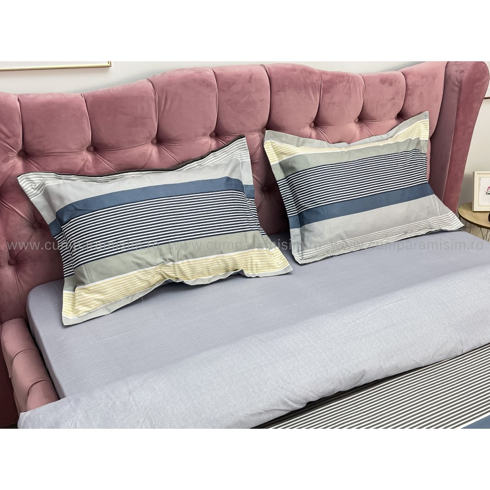 Lenjerie pat dublu cu doua feţe, bumbac satinat, 4 piese, Albastru, dungi, Johny Home Pucioasa, cod produs: SPR-A50-503