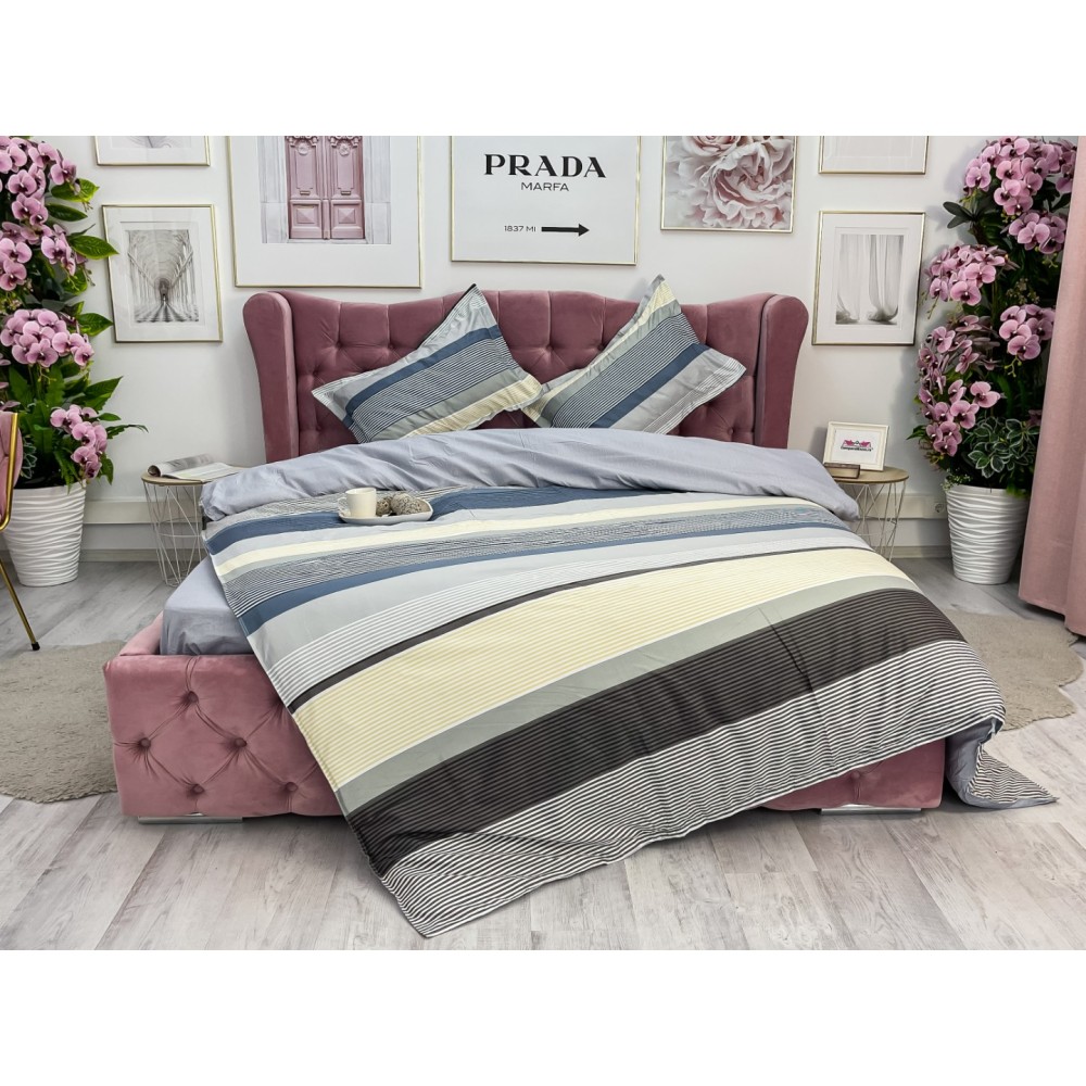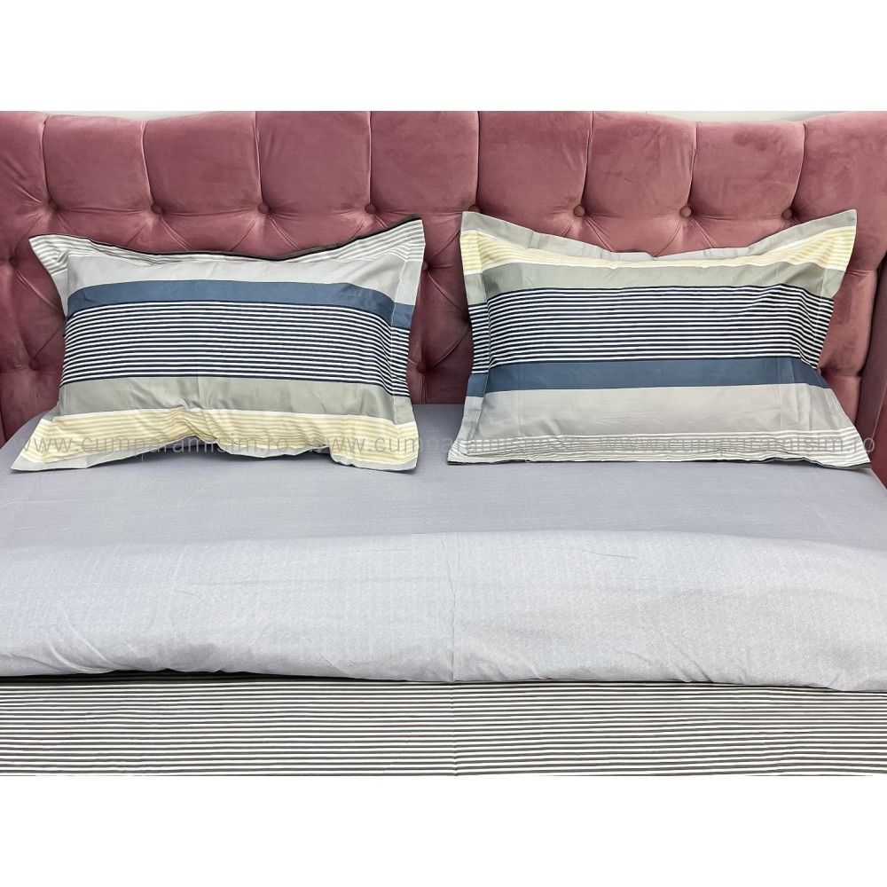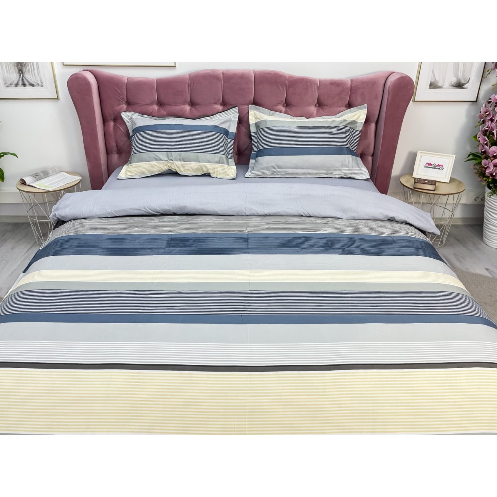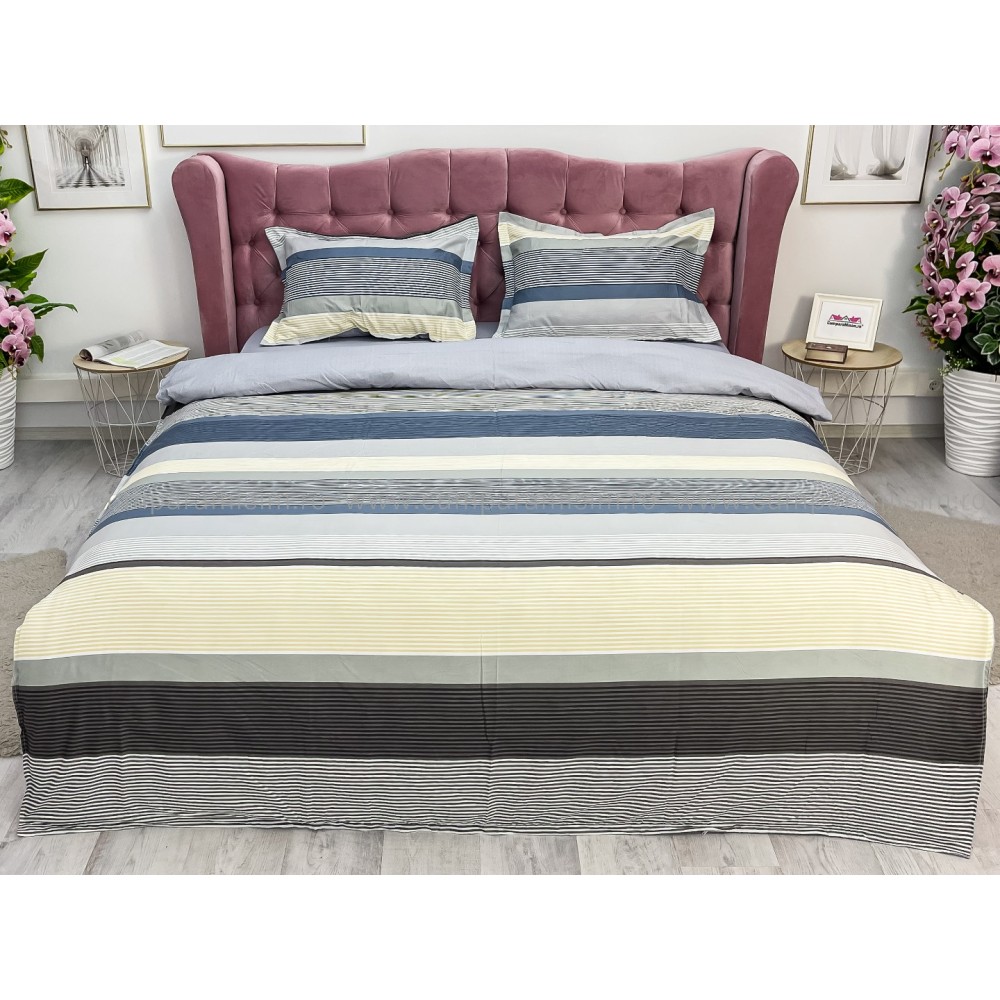 Lenjerie pat dublu cu doua feţe, bumbac satinat, 4 piese, Albastru, dungi, Johny Home Pucioasa, cod produs: SPR-A50-503