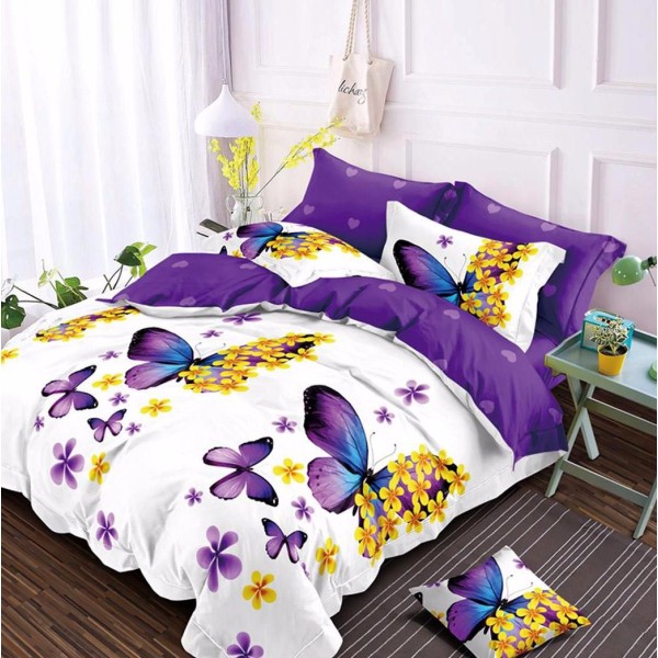 Lenjerie pat dublu cu doua feţe, bumbac satinat, 4 piese, Mov, fluturasi, Johny Home Pucioasa, cod produs: SPR-A50-552