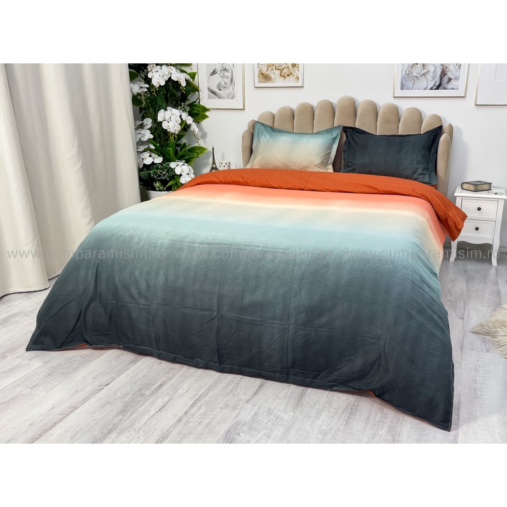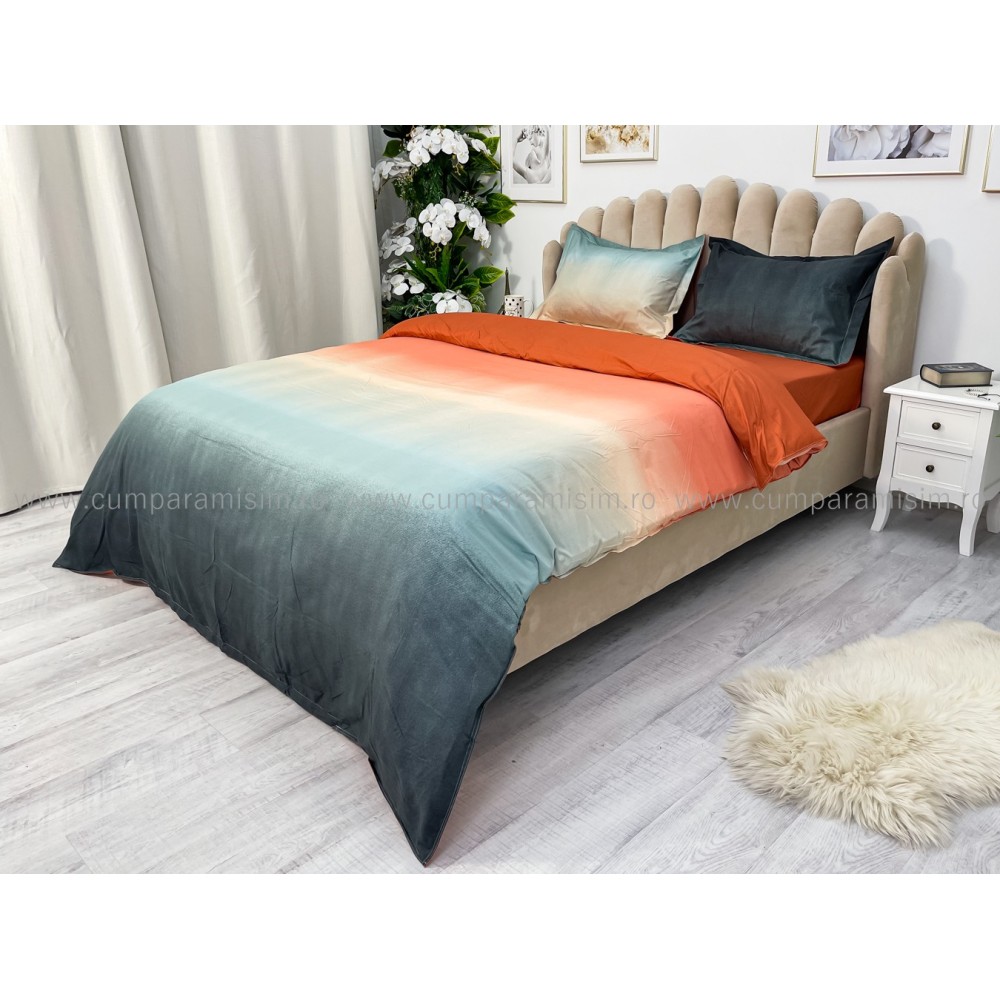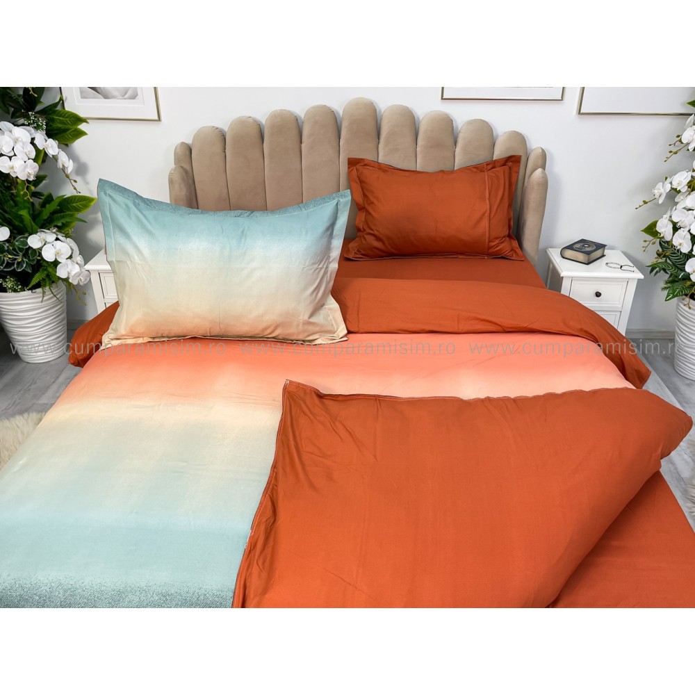 Lenjerie pat dublu cu doua feţe, bumbac satinat, 4 piese, Portocaliu, Johny Home Pucioasa, cod produs: SPR-A50-581