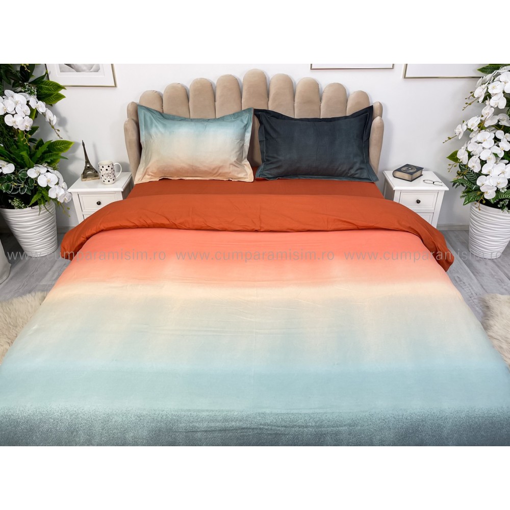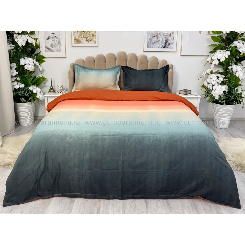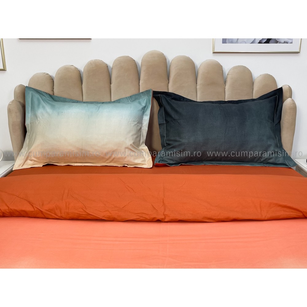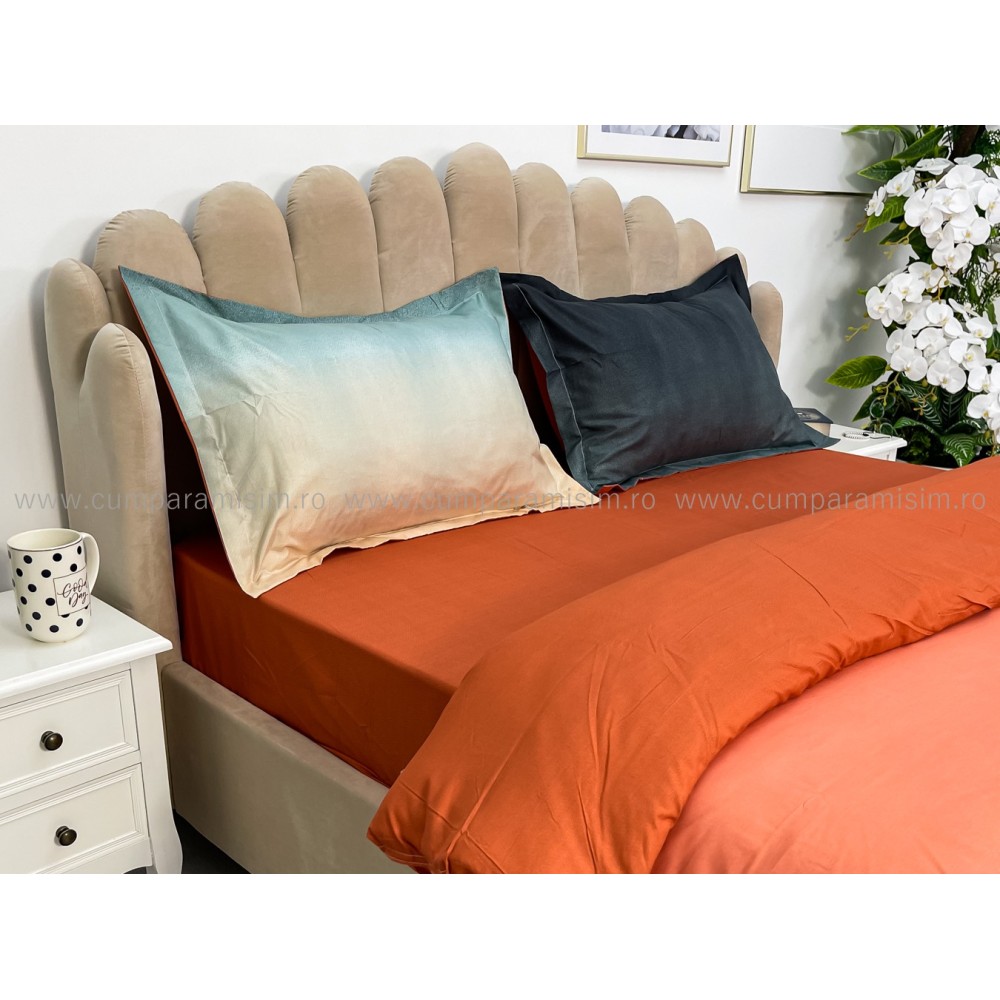 Lenjerie pat dublu cu doua feţe, bumbac satinat, 4 piese, Portocaliu, Johny Home Pucioasa, cod produs: SPR-A50-581