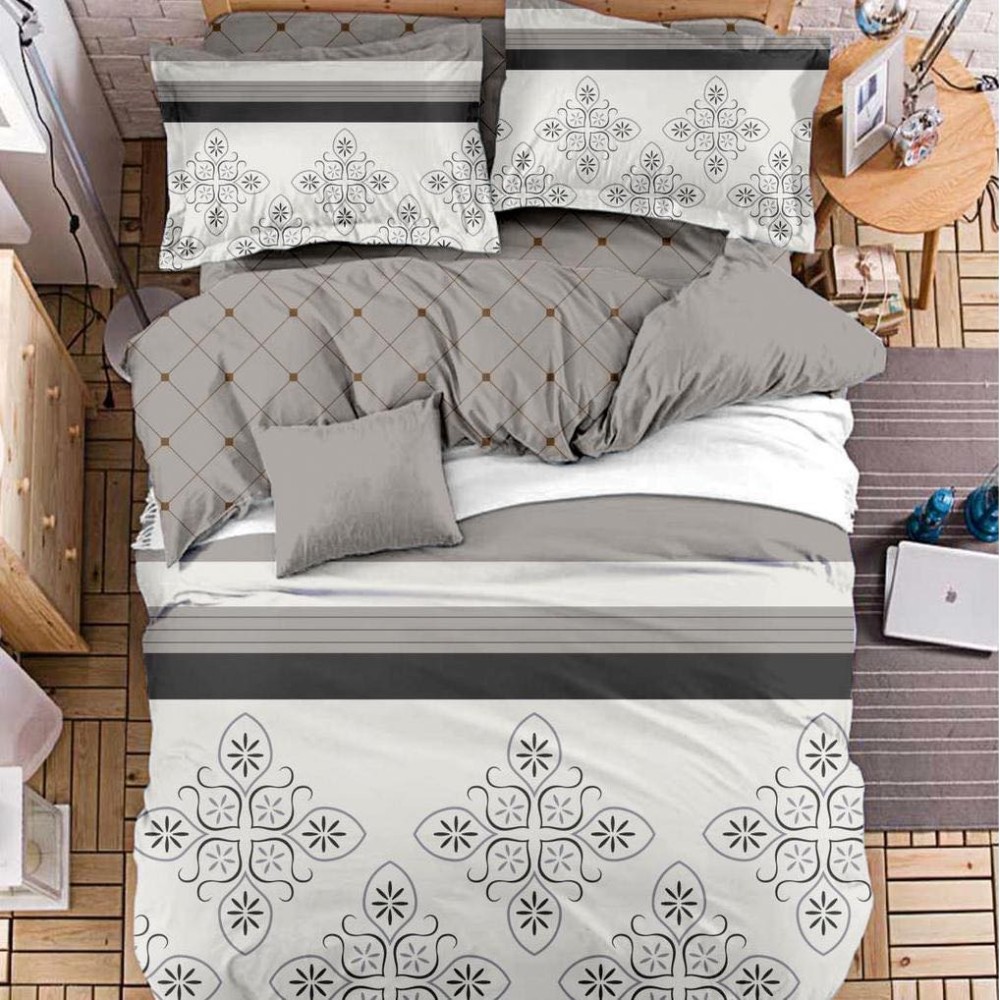 Lenjerie pat dublu cu doua feţe, bumbac satinat, 4 piese, Gri, model clasic, Johny Home Pucioasa, cod produs: SPR-A50-590