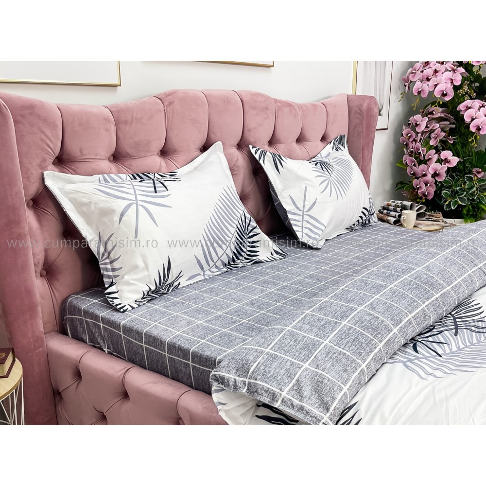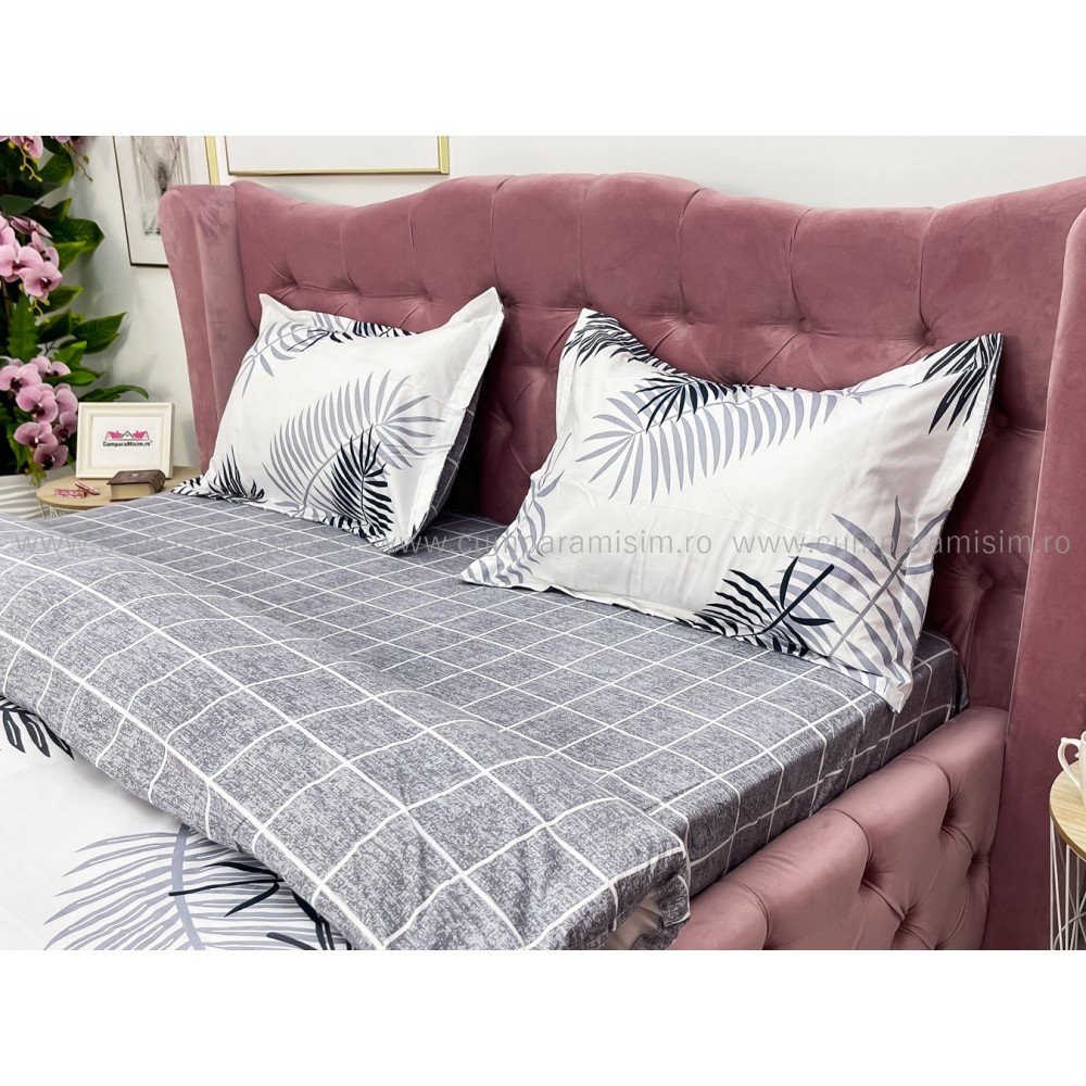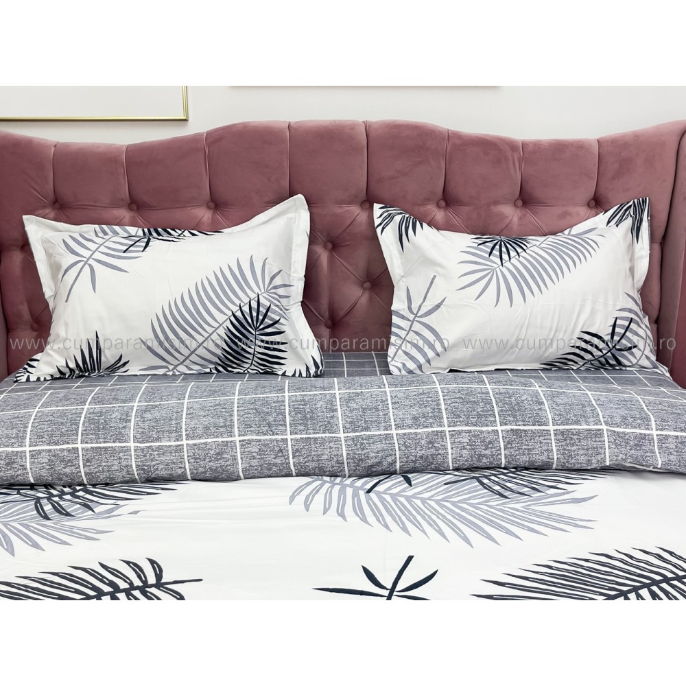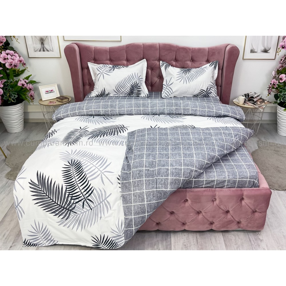 Lenjerie pat dublu cu doua feţe, bumbac satinat, 4 piese, Gri, frunze, Johny Home Pucioasa, cod produs: SPR-A50-592