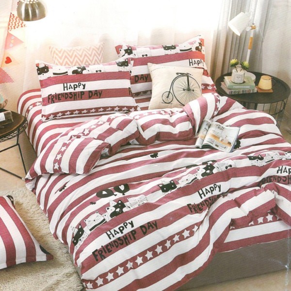 Lenjerie pat dublu cu doua feţe, bumbac satinat, 4 piese, Alb, dungi, Johny Home Pucioasa, cod produs: SPR-A50-387