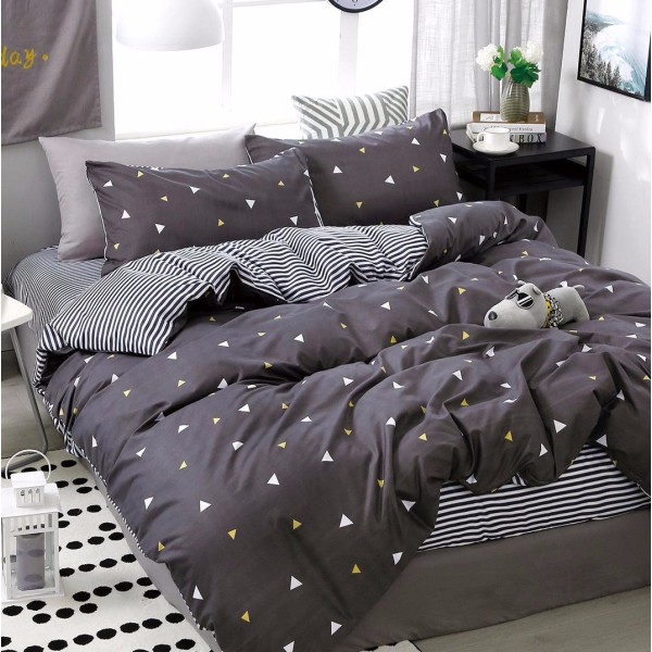 Lenjerie pat dublu cu doua feţe, bumbac satinat, 4 piese, Gri, forme geometrice, Johny Home Pucioasa, cod produs: SPR-A50-392