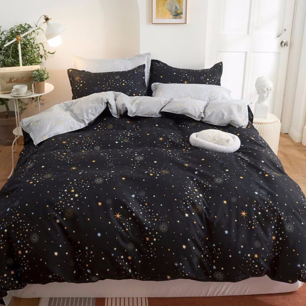 Lenjerie pat dublu cu doua feţe, bumbac satinat, 4 piese, Bleumarin, stelute, Johny Home Pucioasa, cod produs: SPR-A50-495