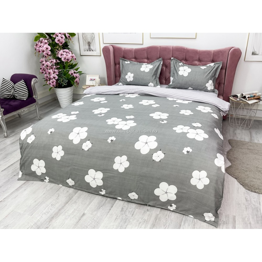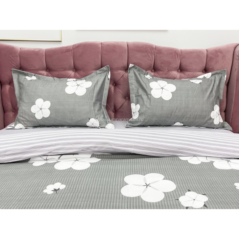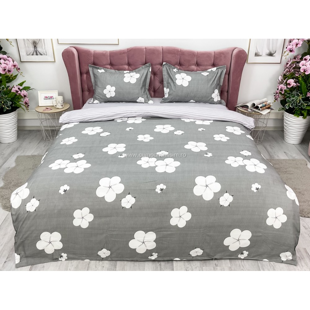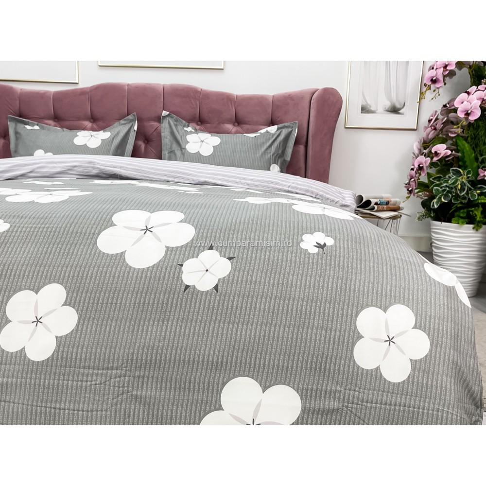 Lenjerie pat dublu cu doua feţe, bumbac satinat, 4 piese, Gri, flori, Johny Home Pucioasa, cod produs: SPR-A50-520