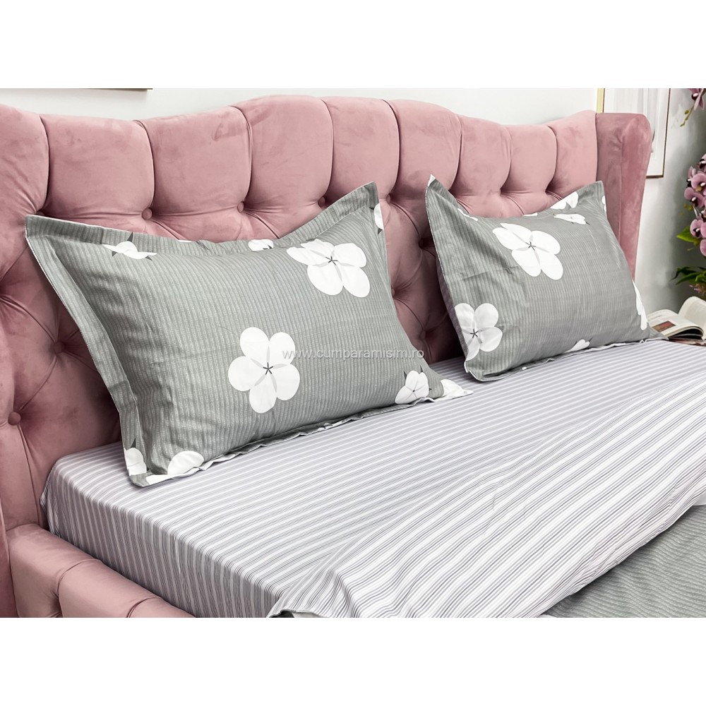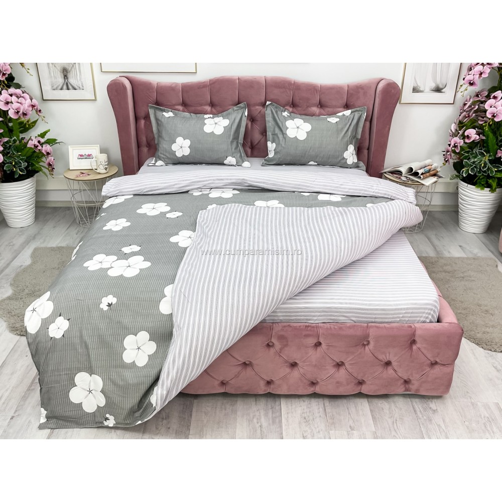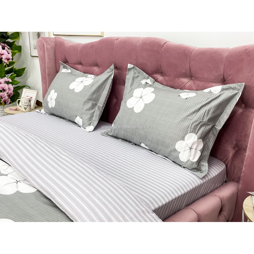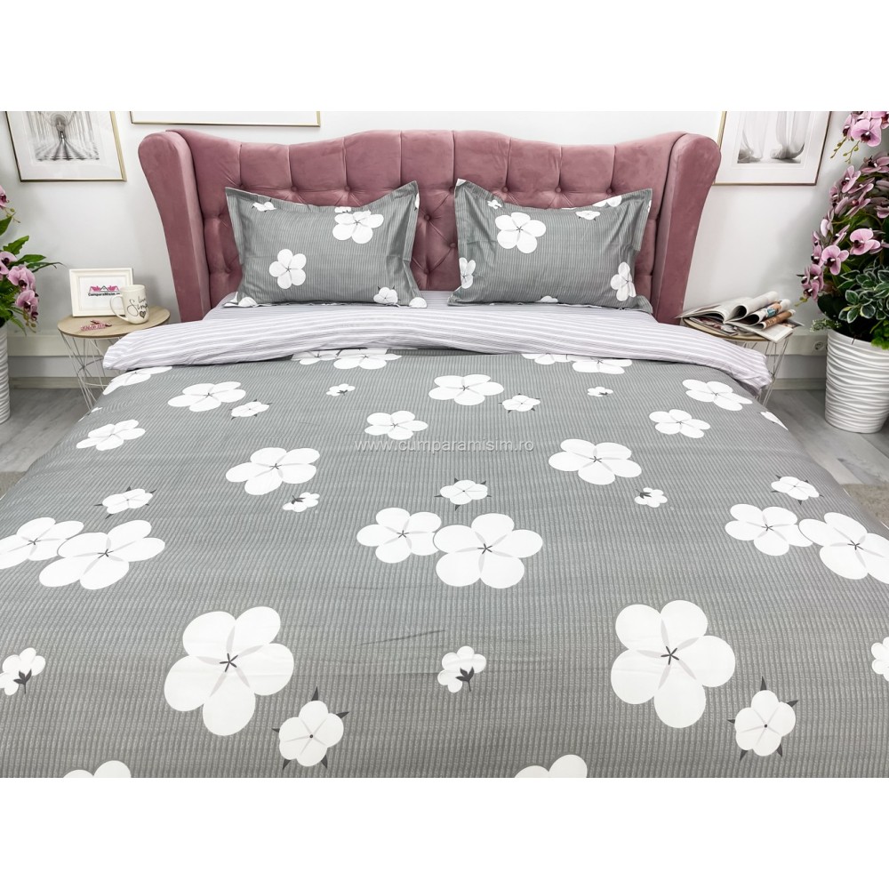 Lenjerie pat dublu cu doua feţe, bumbac satinat, 4 piese, Gri, flori, Johny Home Pucioasa, cod produs: SPR-A50-520