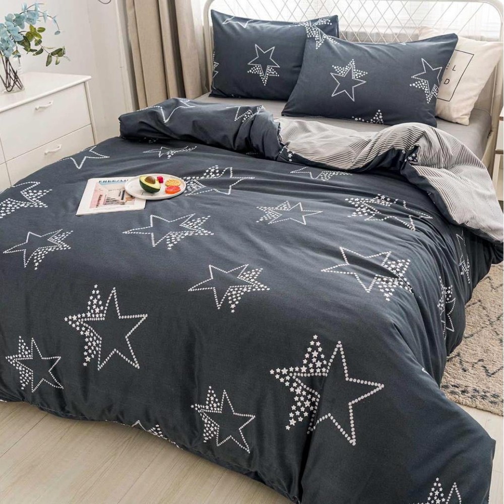 Lenjerie pat dublu cu doua feţe, bumbac satinat, 4 piese, Gri, stelute, Johny Home Pucioasa, cod produs: SPR-A50-524