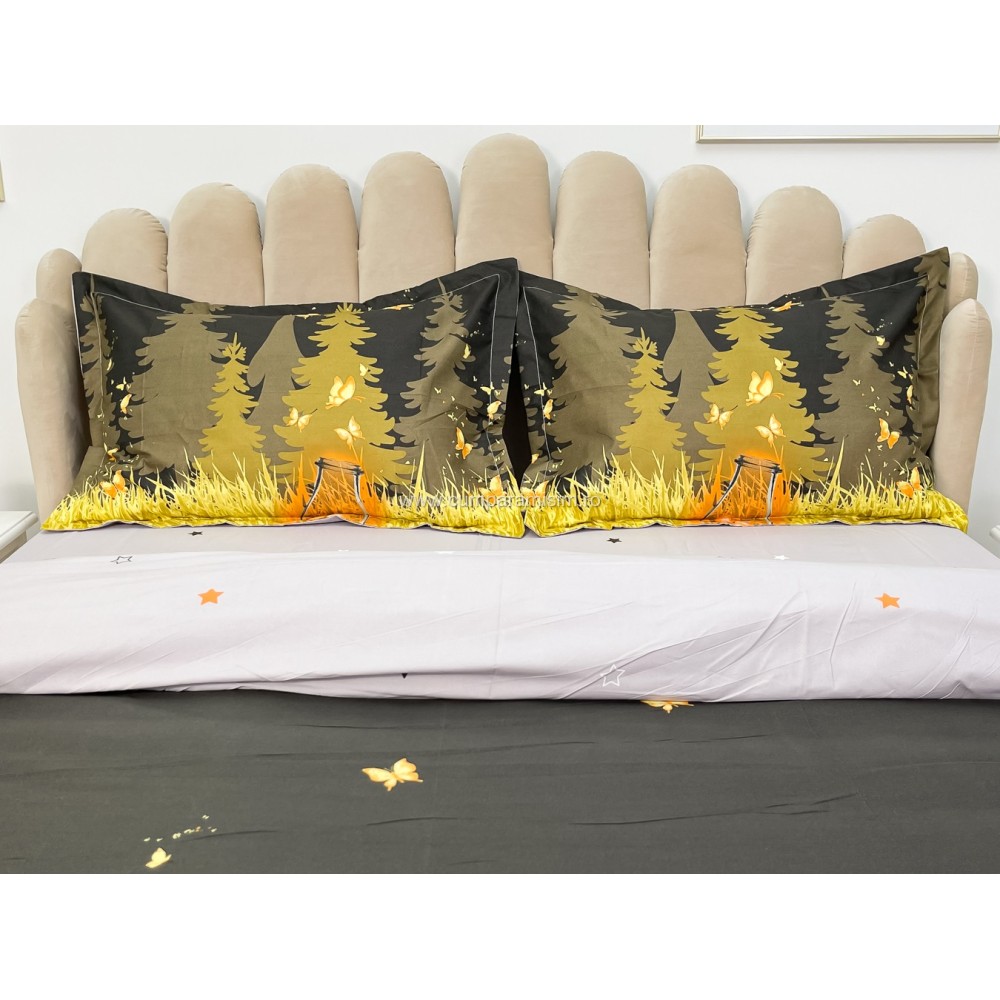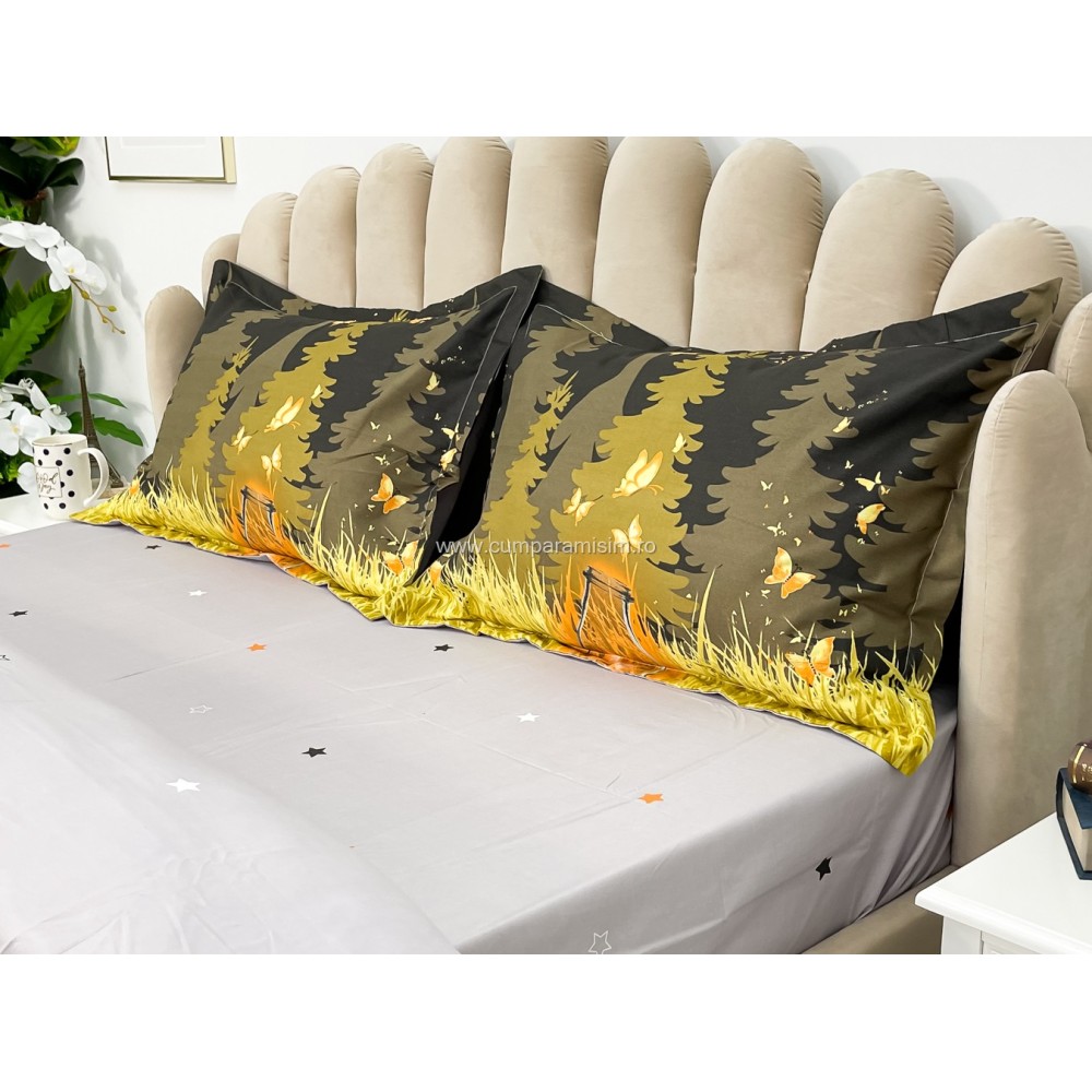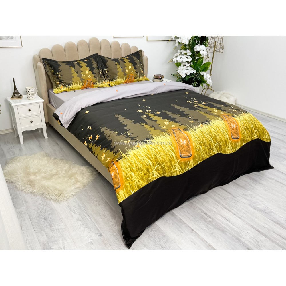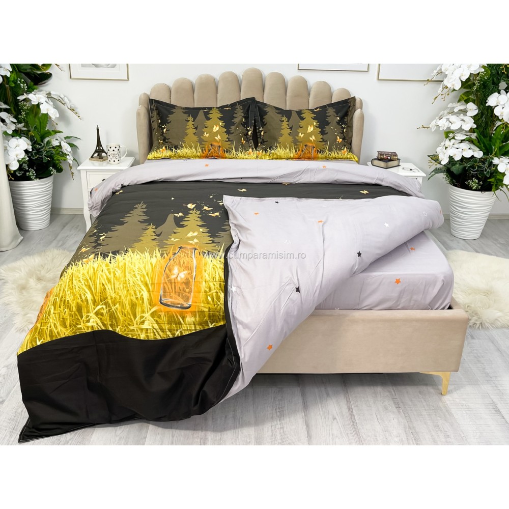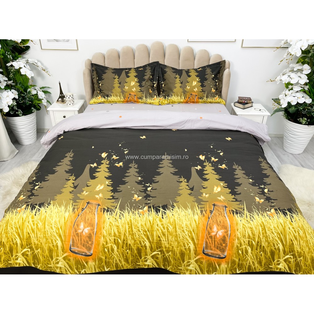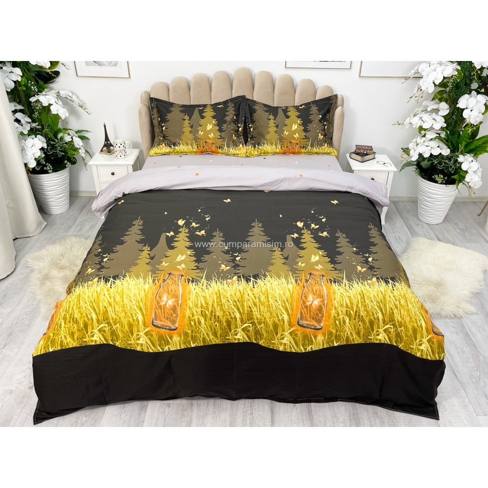 Lenjerie pat dublu cu doua feţe, bumbac satinat, 4 piese, Negru, braduti, Johny Home Pucioasa, cod produs: SPR-A50-567