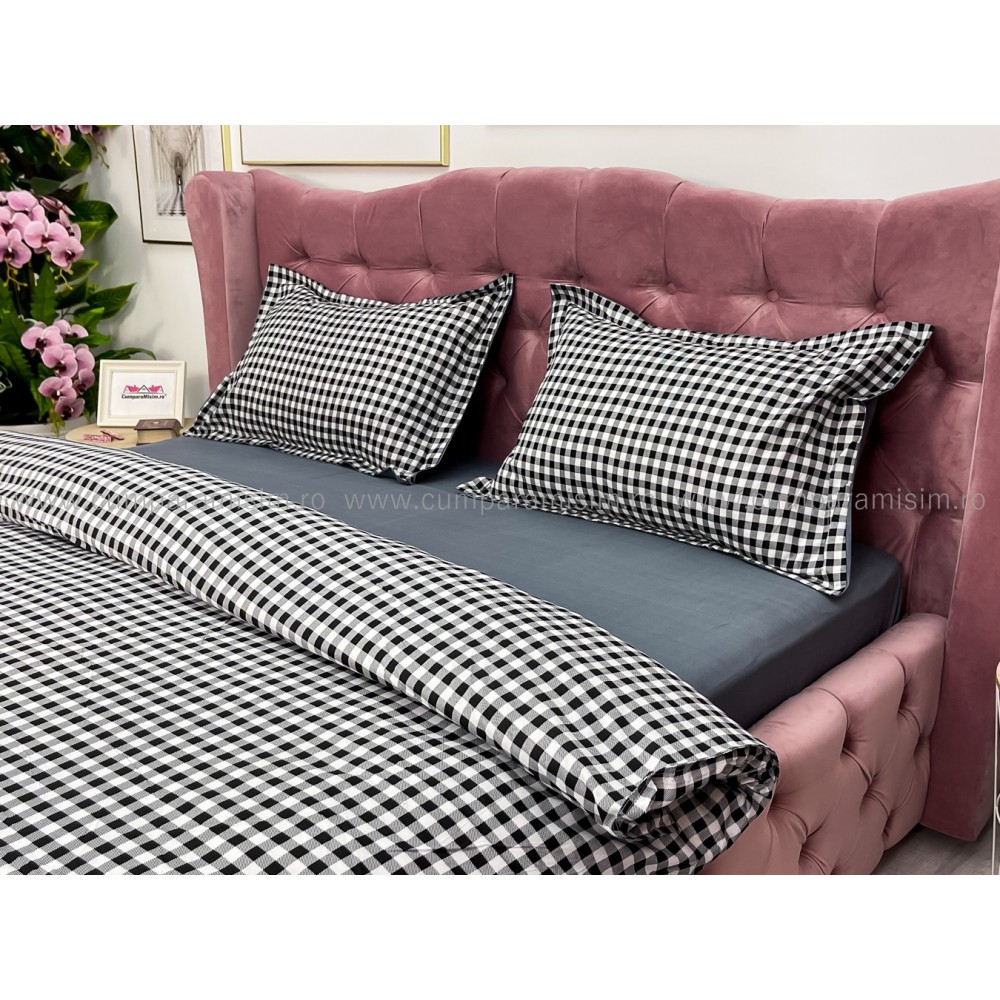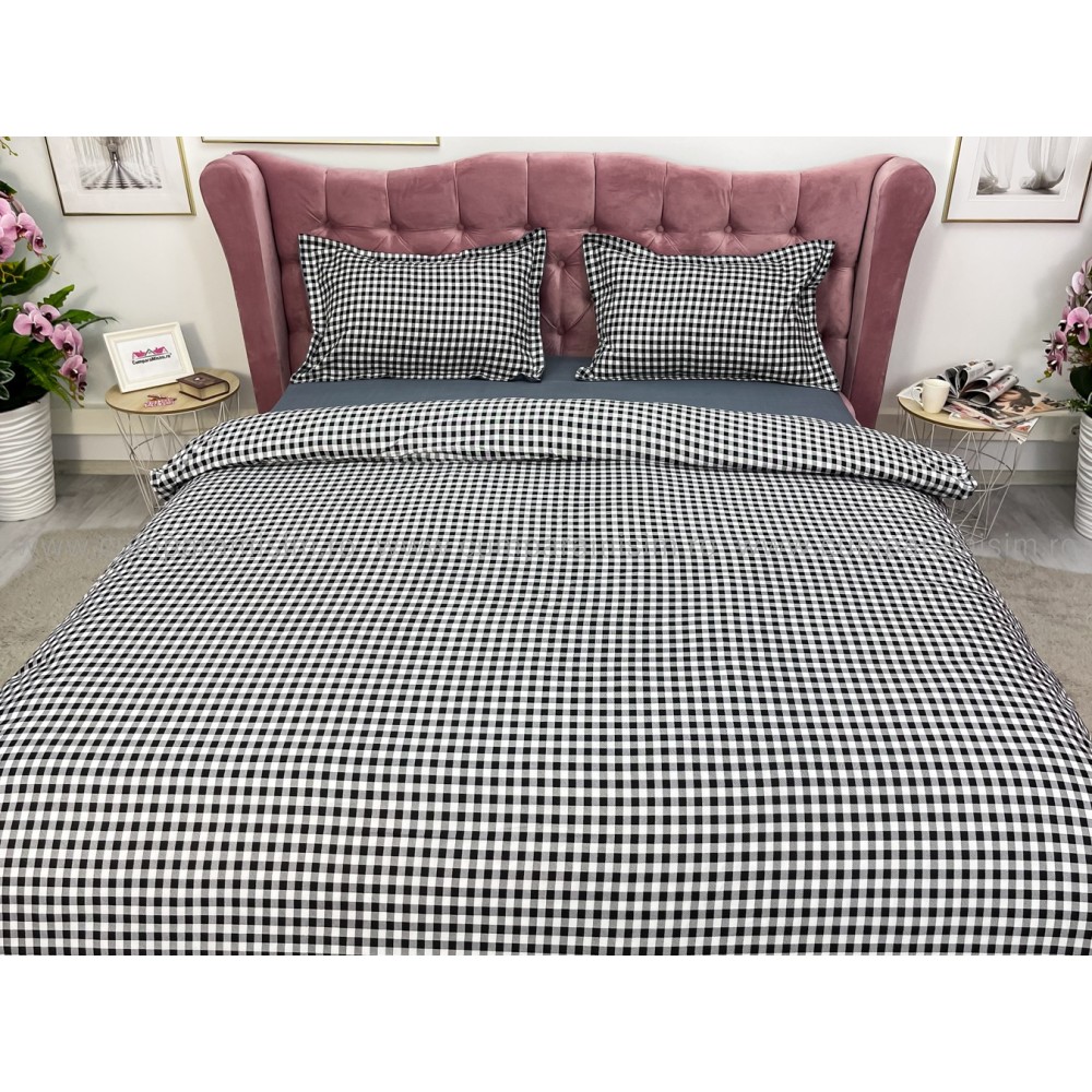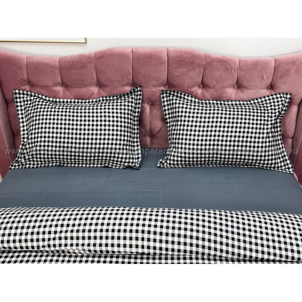 Lenjerie pat dublu cu doua feţe, bumbac satinat, 4 piese, Gri, carouri, Johny Home Pucioasa, cod produs: SPR-A50-600