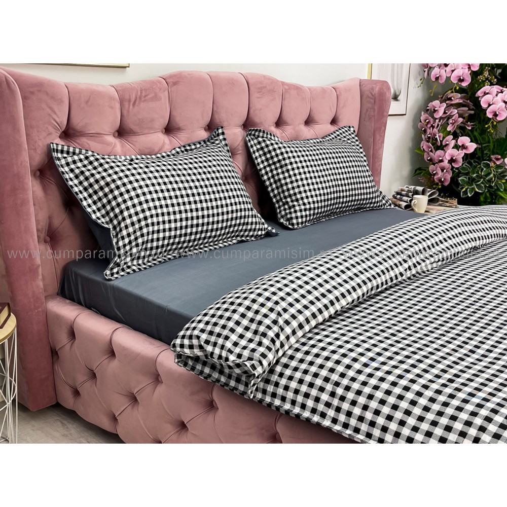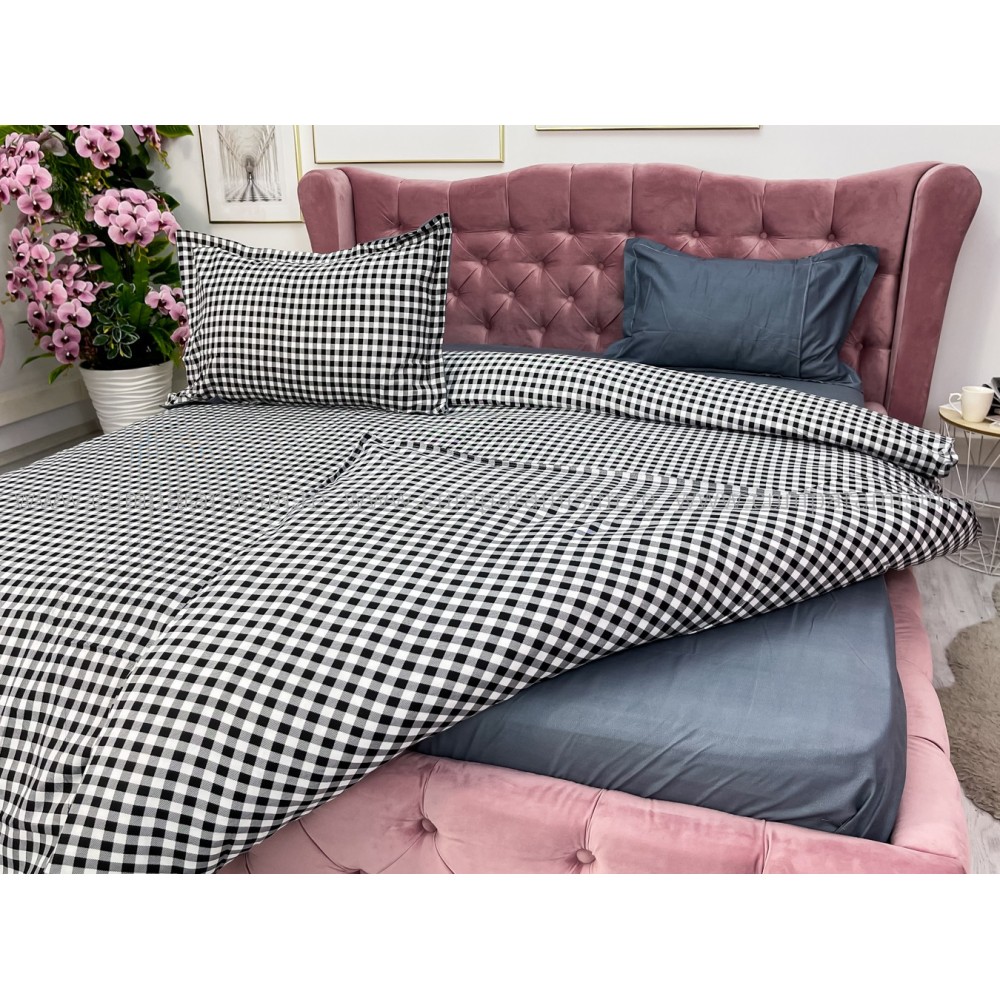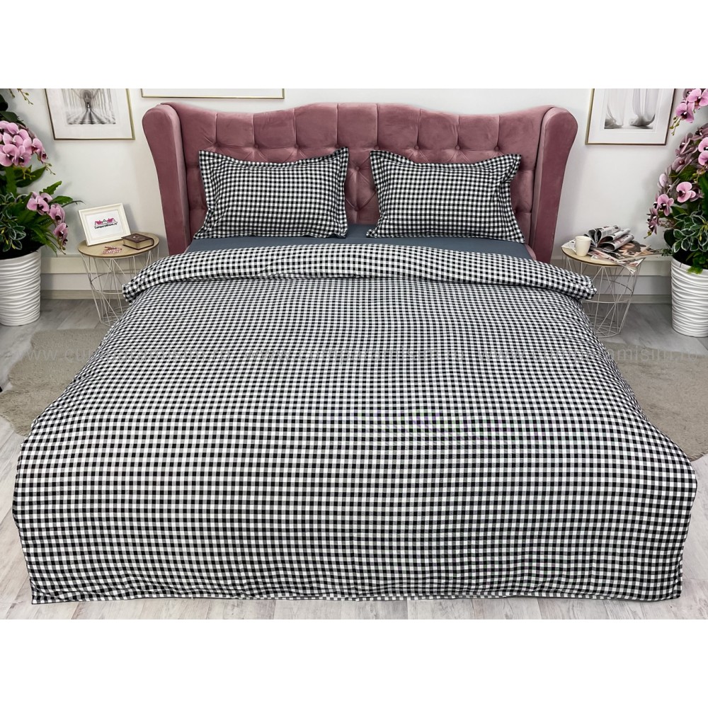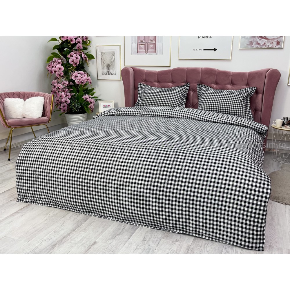 Lenjerie pat dublu cu doua feţe, bumbac satinat, 4 piese, Gri, carouri, Johny Home Pucioasa, cod produs: SPR-A50-600
