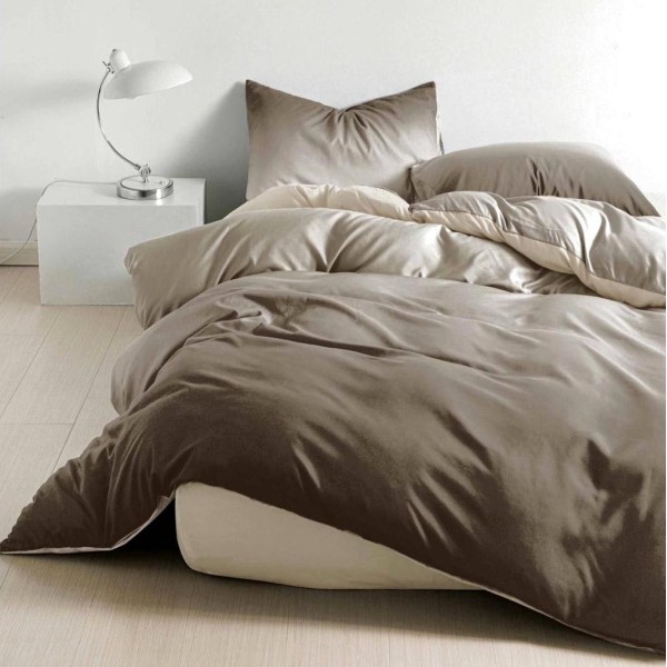 Lenjerie pat dublu, bumbac satinat, cu elastic, kaki, Johny Home Pucioasa, cod produs: SPR-E-86