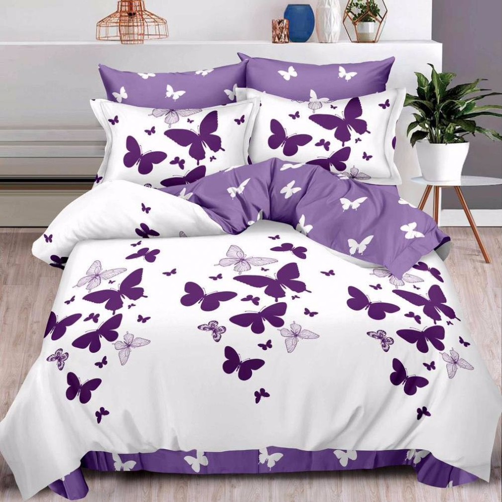 Lenjerie pat dublu, FINET, 6 piese, Mov, fluturi, Johny Home Pucioasa, cod produs: SPR-R60-233