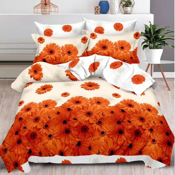 Lenjerie pat dublu, FINET, 6 piese, Portocaliu, flori, Johny Home Pucioasa, cod produs: SPR-R60-243