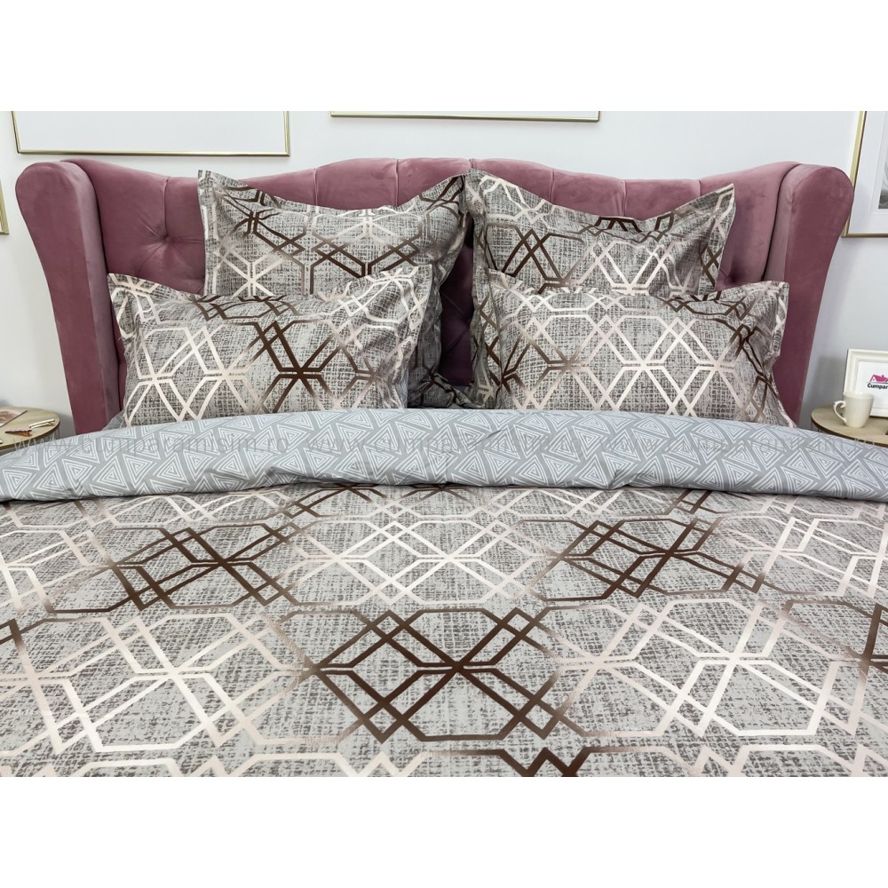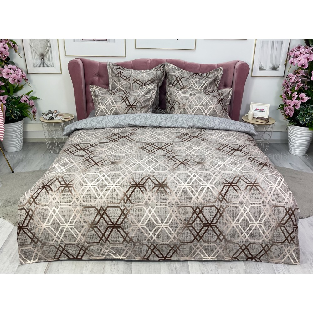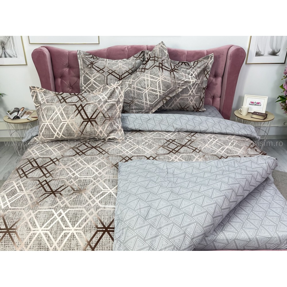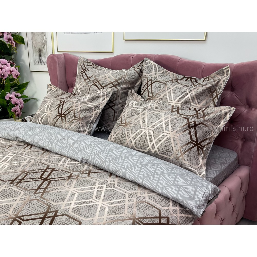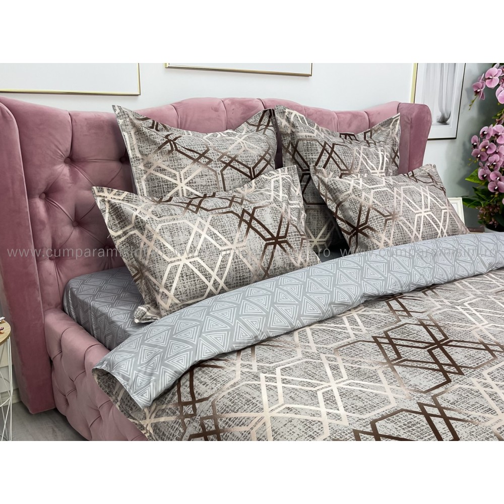 Lenjerie pat dublu, FINET, 6 piese, Gri, forme geometrice, Johny Home Pucioasa, cod produs: SPR-R60-417