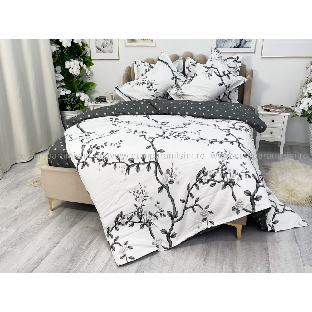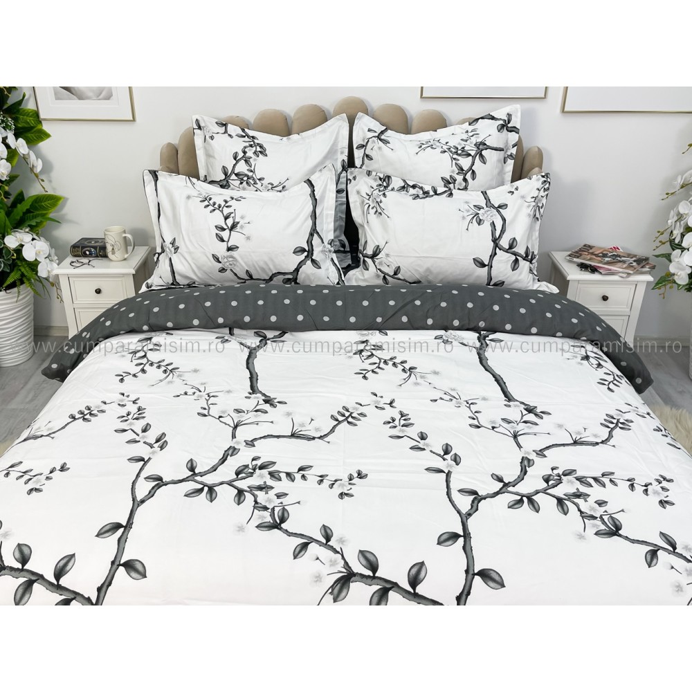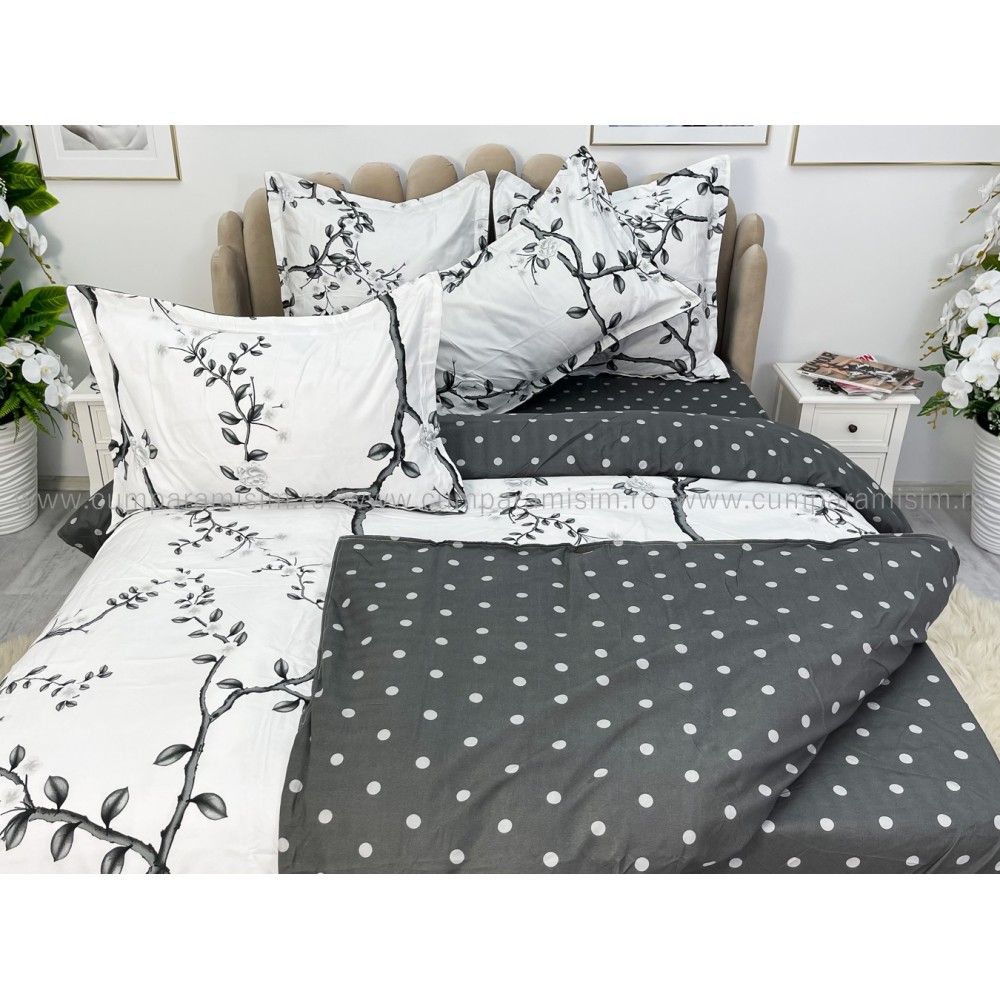 Lenjerie pat dublu, FINET, 6 piese, Gri, crengute, Johny Home Pucioasa, cod produs: SPR-R60-465
