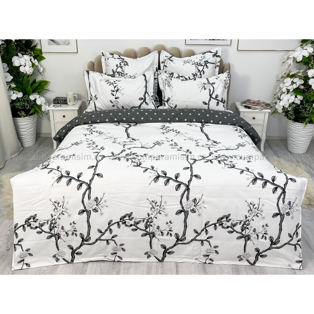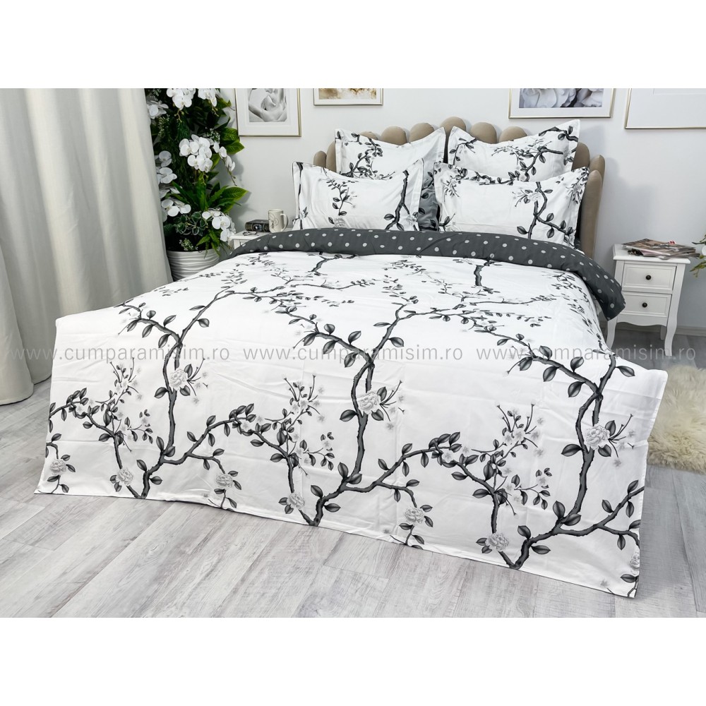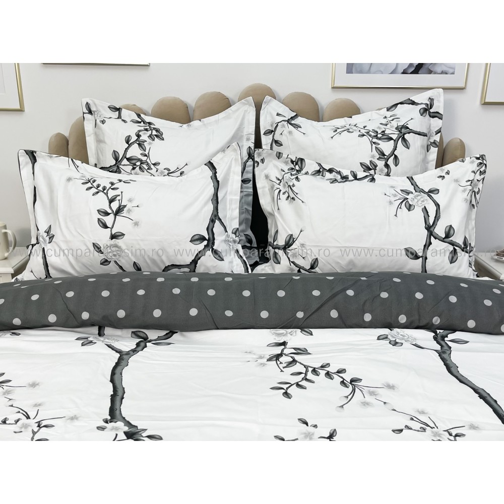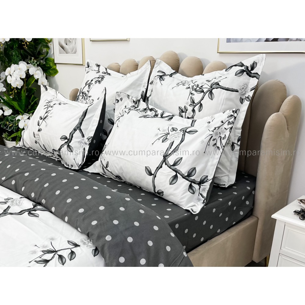 Lenjerie pat dublu, FINET, 6 piese, Gri, crengute, Johny Home Pucioasa, cod produs: SPR-R60-465
