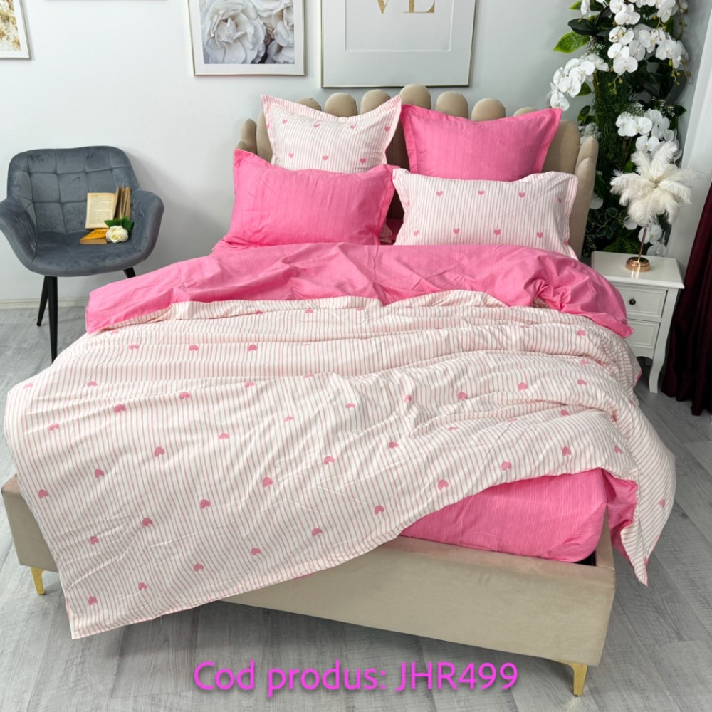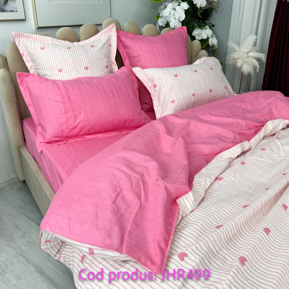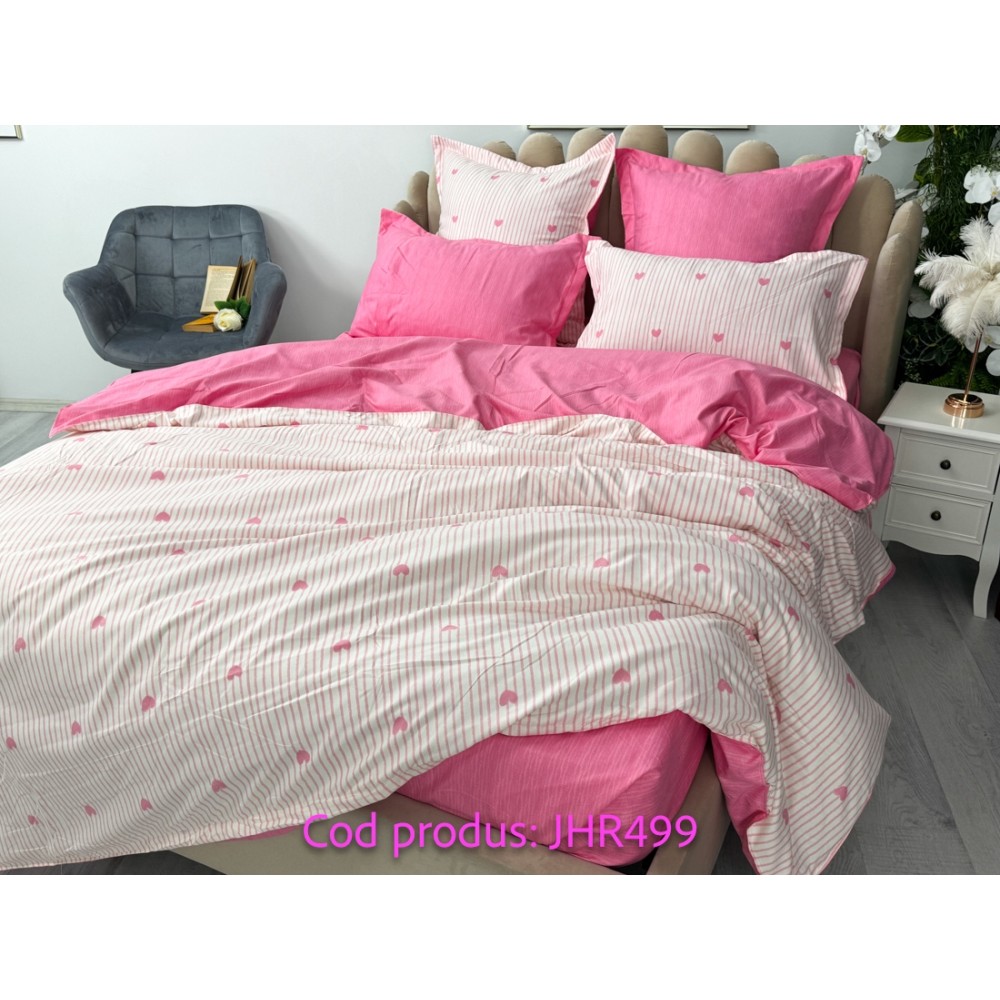 Lenjerie pat dublu, FINET, 6 piese, Roz, inimioare, Johny Home Pucioasa, cod produs: SPR-R60-499