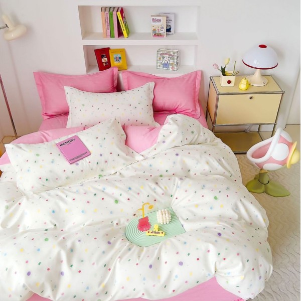 Lenjerie pat dublu, FINET, 6 piese, Roz, buline, Johny Home Pucioasa, cod produs: SPR-R60-518