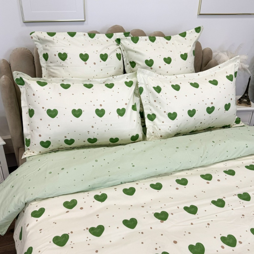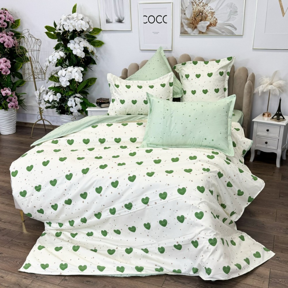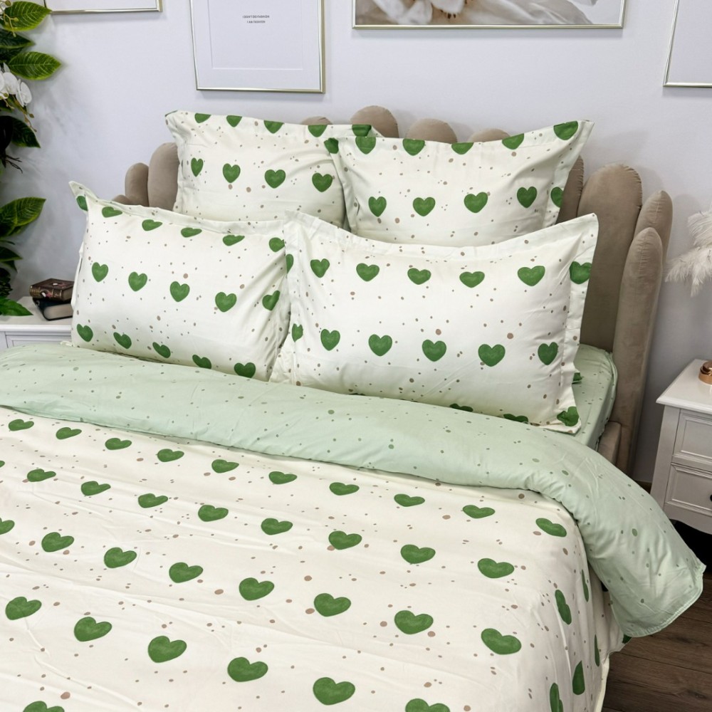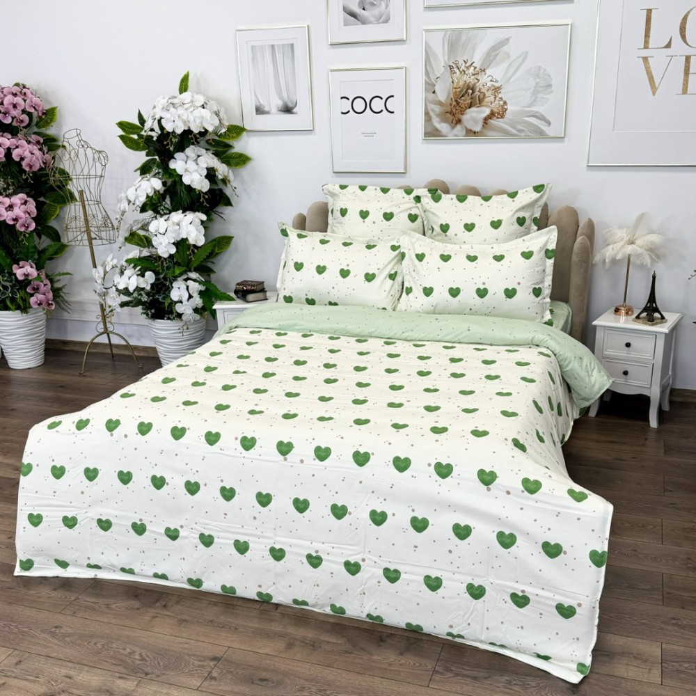 Lenjerie pat dublu, FINET, 6 piese, Verde, inimioare, Johny Home Pucioasa, cod produs: SPR-R60-525