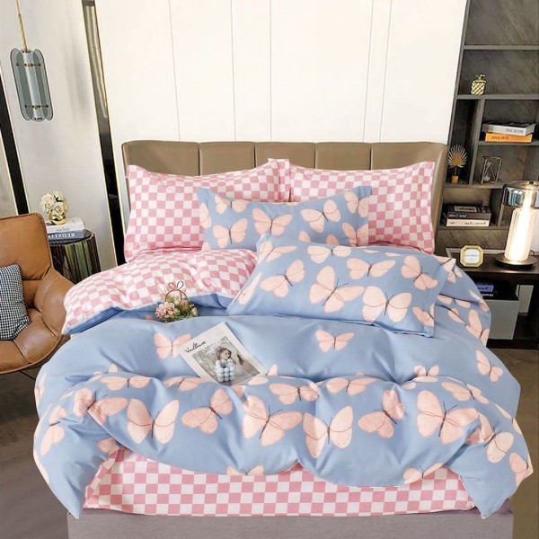 Lenjerie pat dublu, FINET, 6 piese, Roz, fluturi, Johny Home Pucioasa, cod produs: SPR-R60-526