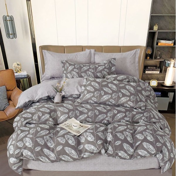 Lenjerie pat dublu, FINET, 6 piese, Gri, frunze, Johny Home Pucioasa, cod produs: SPR-R60-528