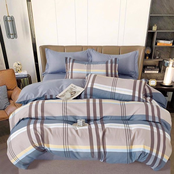 Lenjerie pat dublu, FINET, 6 piese, Gri-Bej, carouri, Johny Home Pucioasa, cod produs: SPR-R60-539