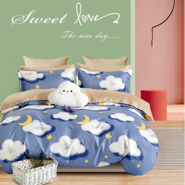 Lenjerie pat dublu, FINET, 6 piese, Albastru, stelute, norisori, Johny Home Pucioasa, cod produs: SPR-R60-547