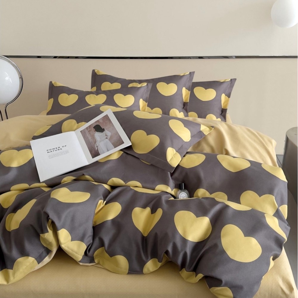 Lenjerie pat dublu, FINET, 6 piese, Gri-Galben, inimioare, Johny Home Pucioasa, cod produs: SPR-R60-553